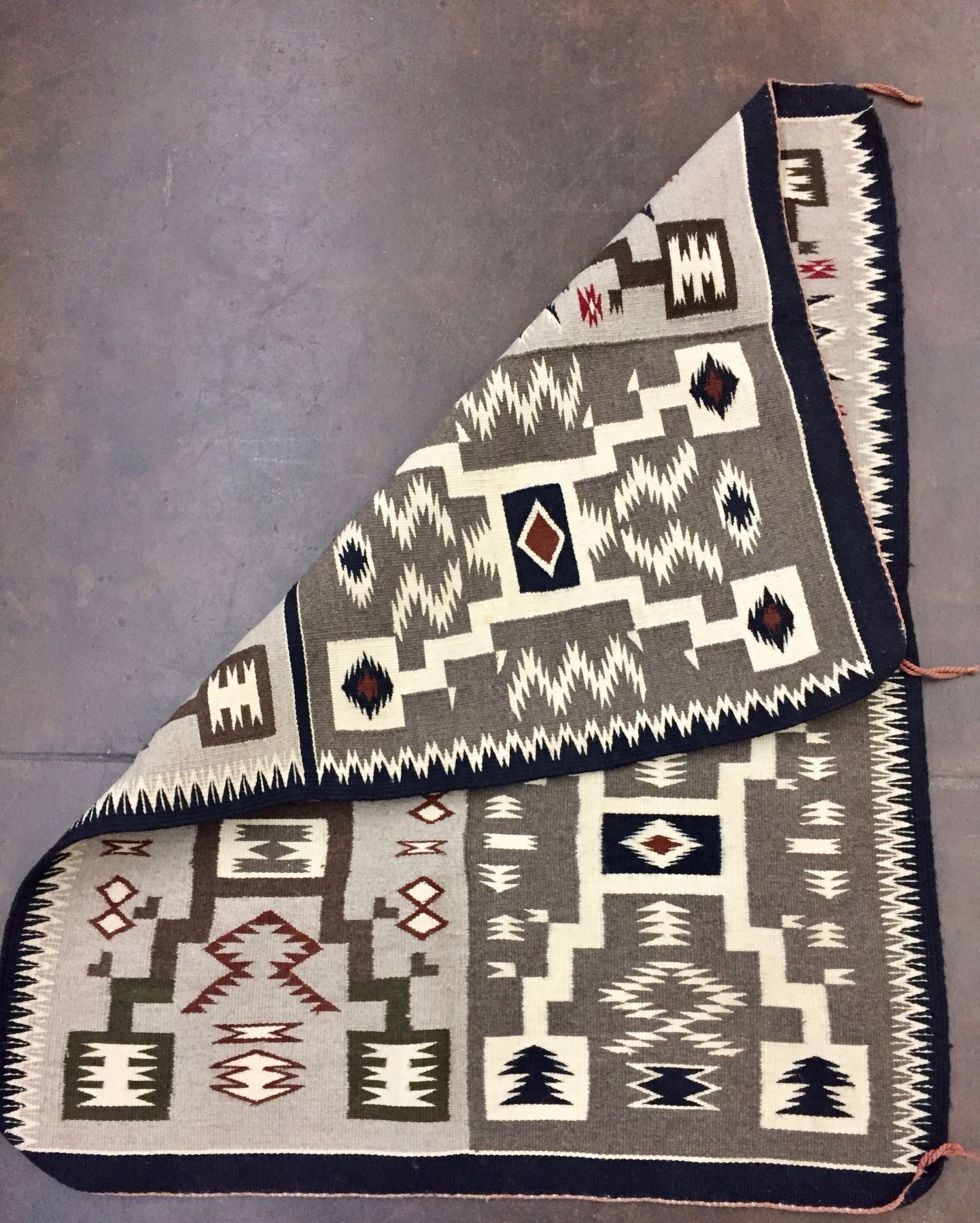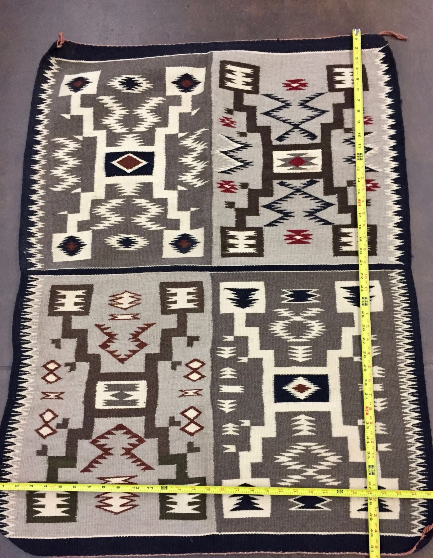 Description: A unique, four panel Navajo Textile with a different storm pattern in each of the four panels. Maker: Unknown Navajo weaver. Approx. Age: Circa 1970s. Size: 30-1/2”w x 41-1/2” long. Condition: Good for its age, normal wear expected. Please look closely at the pictures - they are an important part of our description. Shipping: There will be a $5 handling / packaging fee for shipping this lot. The actual cost of postage will be added on top of that.