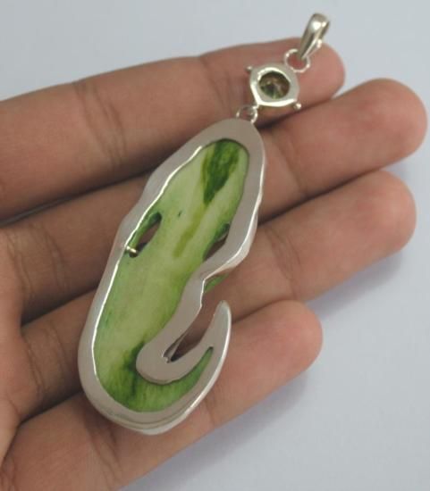 Unique Hand carved Cow bone Mermaid & Peridot Blue Pearl Sterling Silver Pendant, pendant measures approx 3in.
