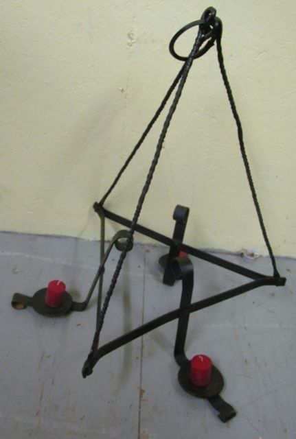 19th Century Unique Iron Chandelier w/3 candle arms 26" t x 20" w