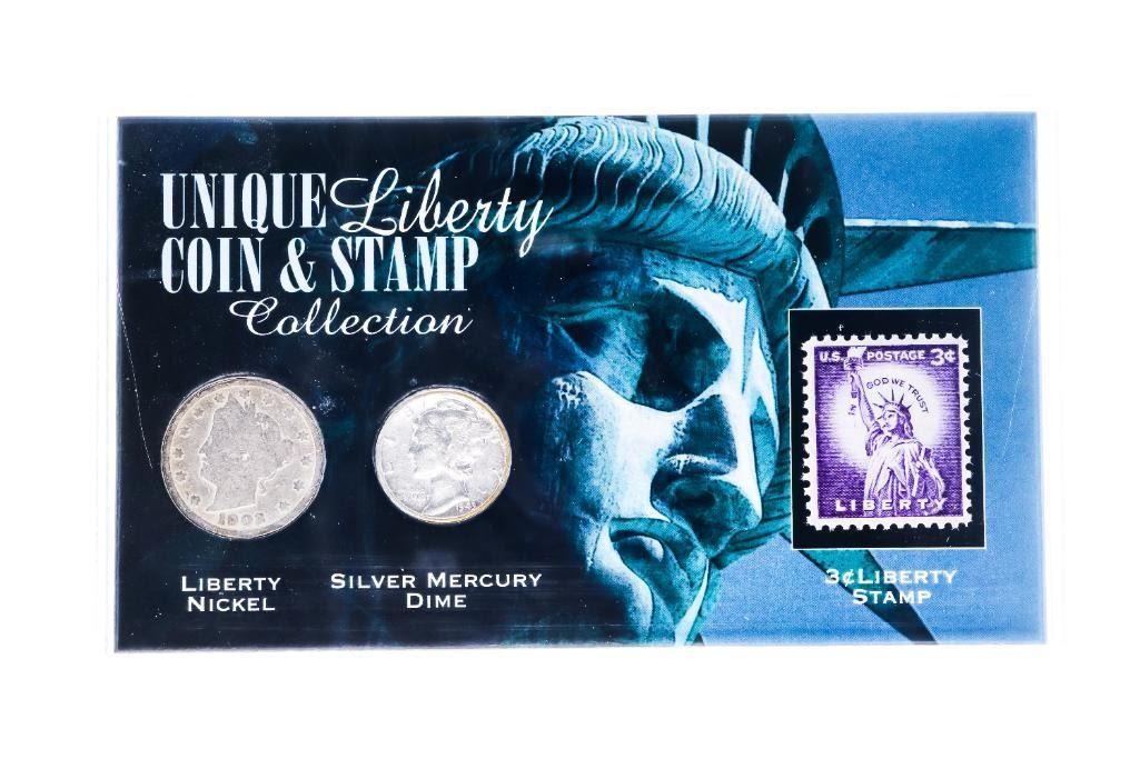 Unique LIBERTY Coins and Stamp of the 20th Century- Including a 90% Silver Mercury Dime