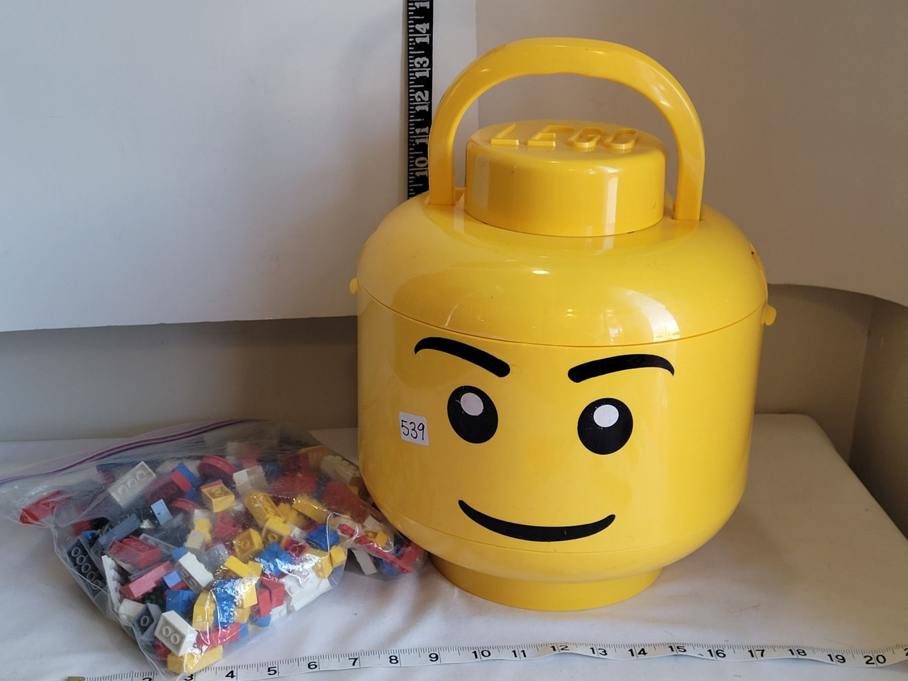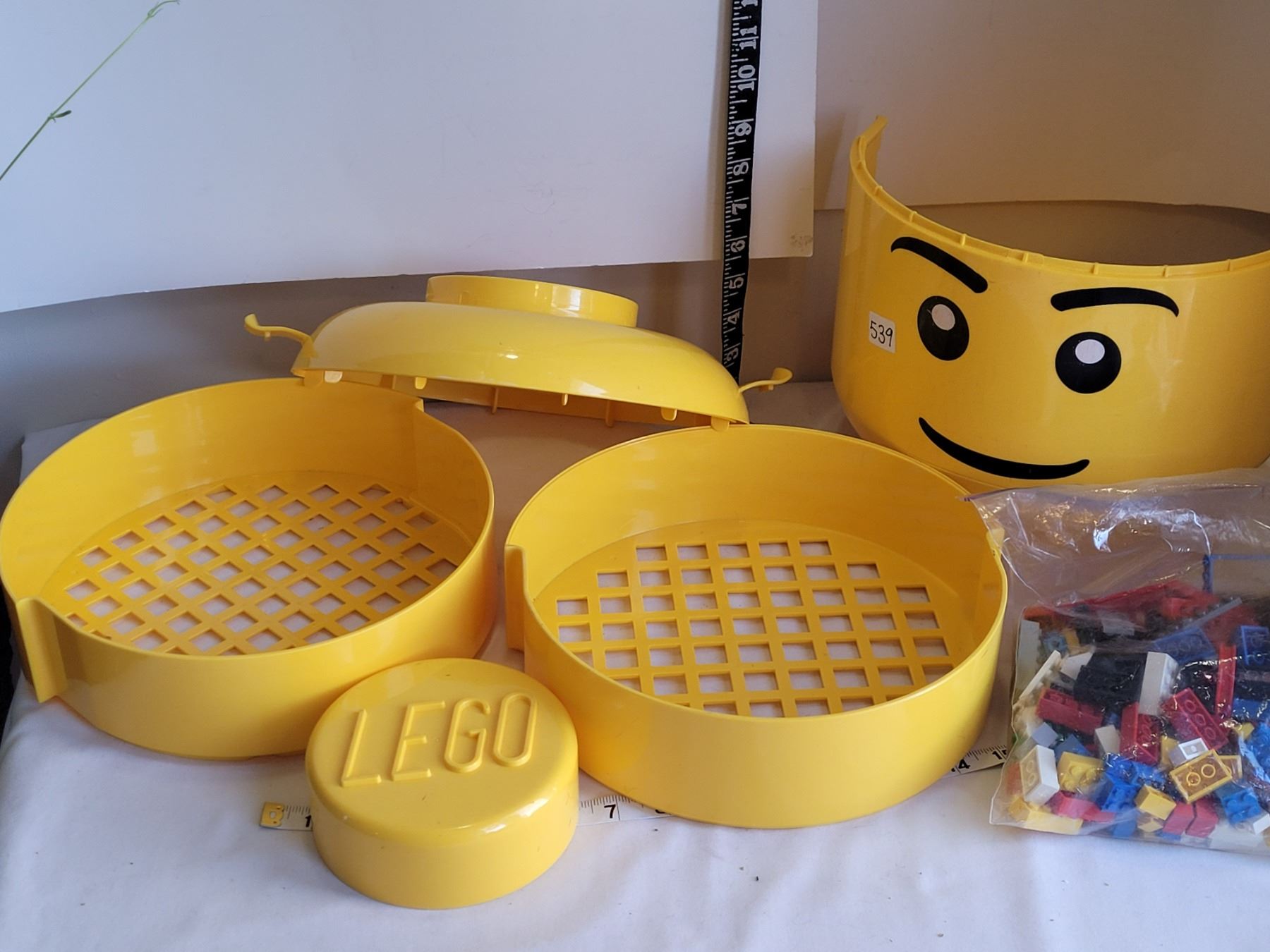 Unique Lego Head container with removable trays & over 275 lego pieces.