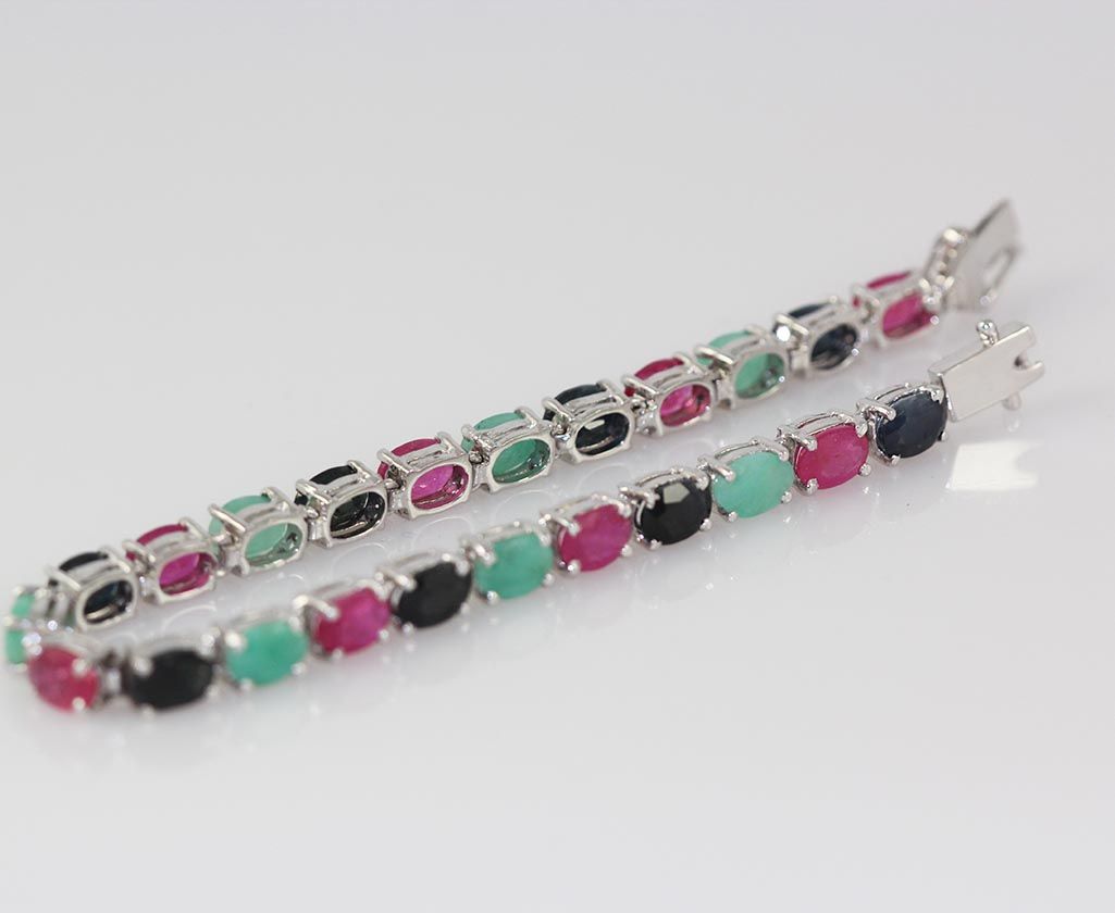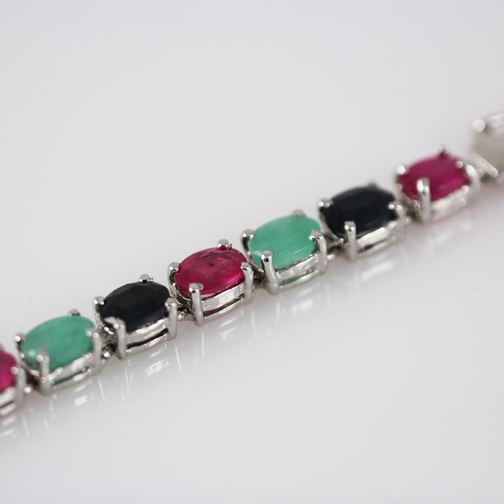Unique Multi-Stone Silver Bracelet, Rhodium Plated for **|**|** 15.70g Sterling Silver Multi-Stone Semi-precious Bracelet, 7" ; MSRP: $400