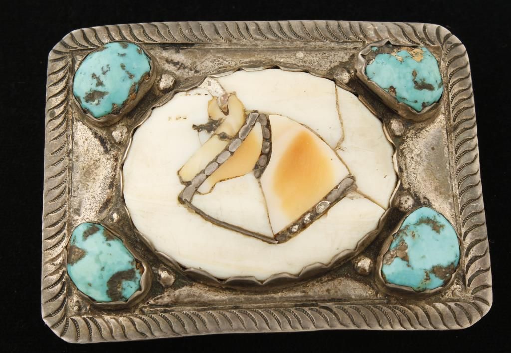 with inlaid horse head accented with turquoise by Dan Simplicio set in sterling.