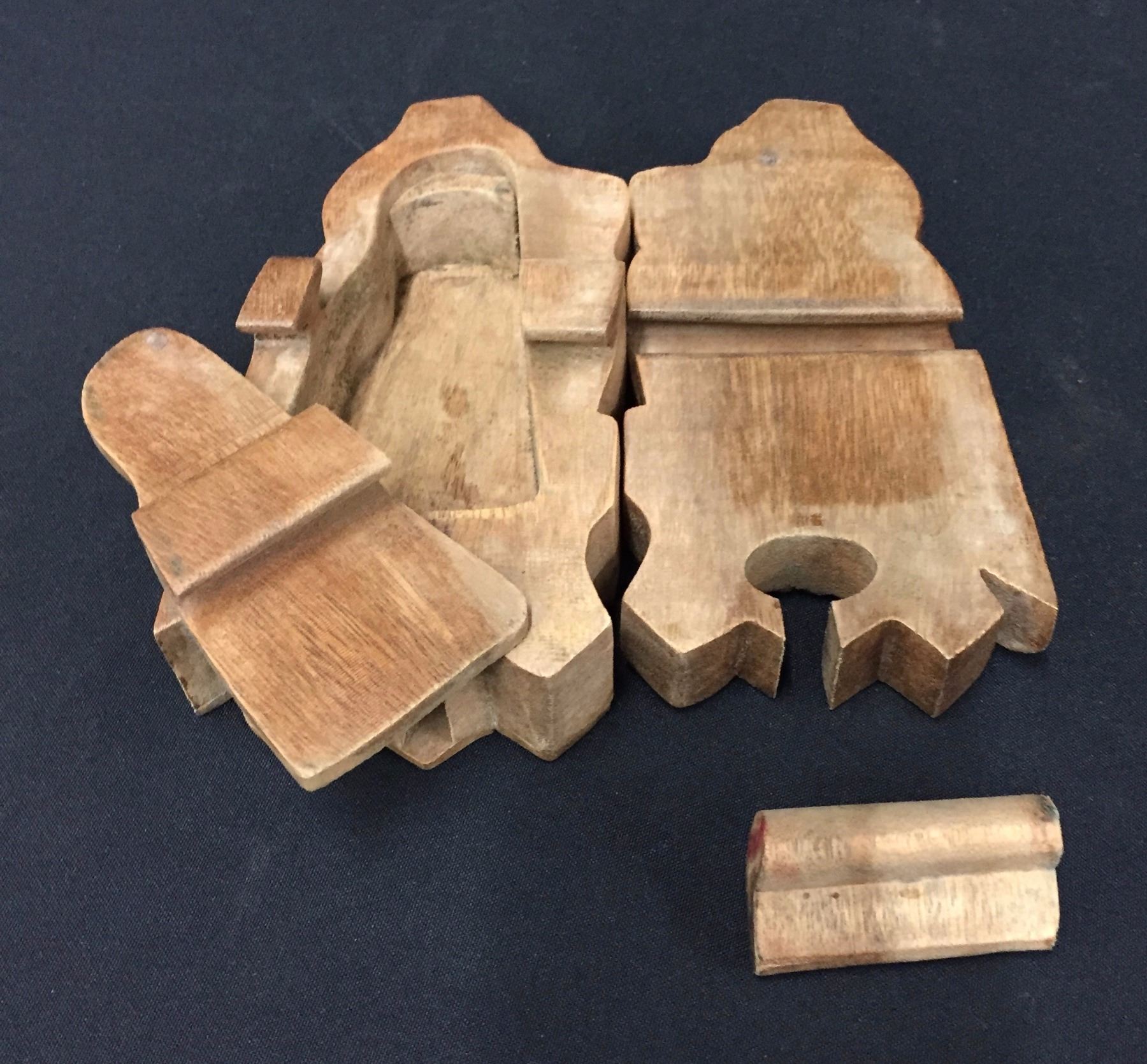 Maker: Unknown. Approx. Age: Vintage. Size: 6” tall. Additional Info: A handmade wooden puzzle box. Condition: Good for its age, normal wear expected. Please look closely at the pictures - they are an important part of our description. Shipping: There will be a $5 handling / packaging fee for shipping this lot. The actual cost of postage will be added on top of that.