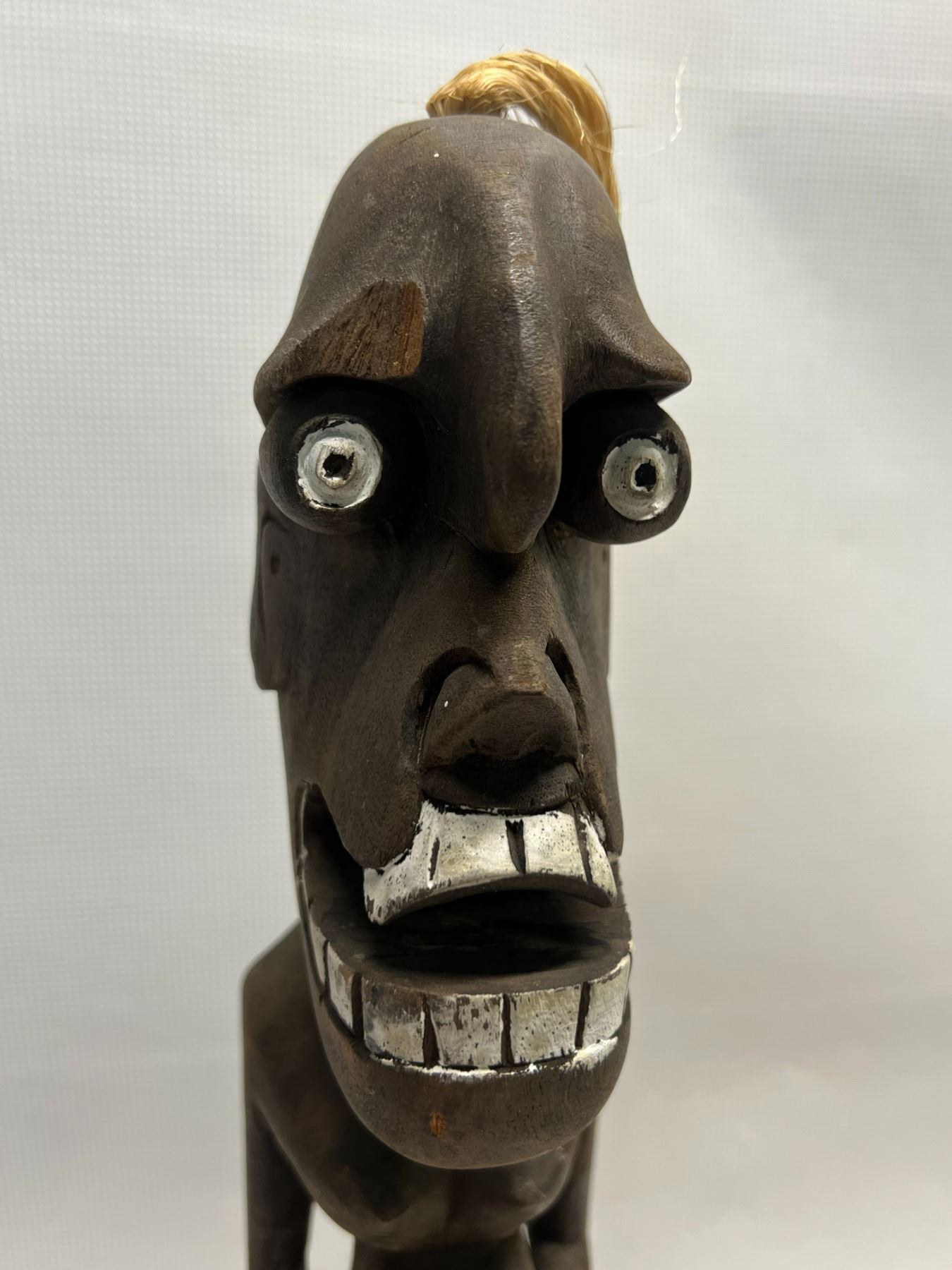 Unique Painted Wood Carving Sculpture (approx: 17"T base approx: 4x2.75")