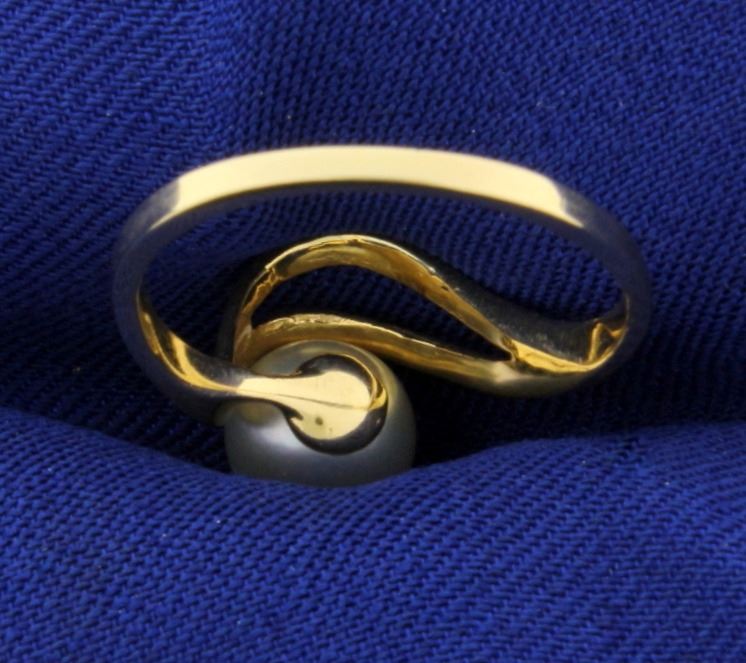 In 14K Yellow Gold. Contains a 7.3mm Pearl with silver white color and excellent luster. Size 7. 2.1g