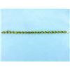 In 14K yellow gold, it is 8 inches long and contains twenty 8mm trillion cut fine peridot gemstones. This bracelet has a lobster clasp. 11.5g