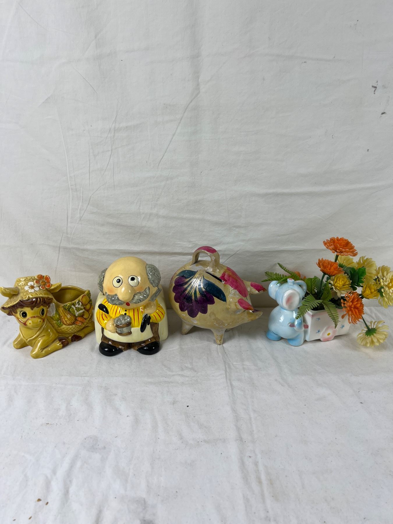 Also includes handmade piggy bank from Mexico. Bank is 7" tall with handle.