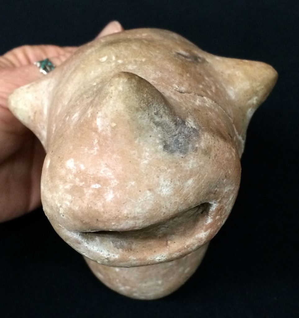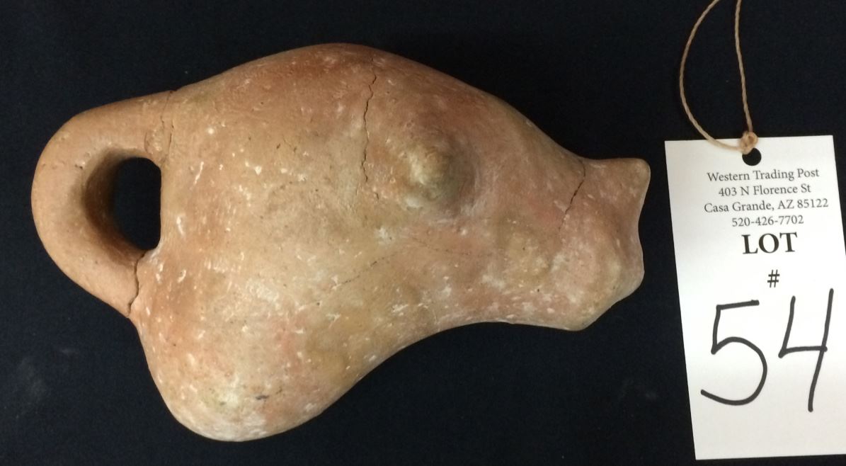This unique effigy vessel was in the old Frontier Relics Museum inventory. While most things in there were found by Mr. Mickens personally in Southeastern AZ, and Western NM, this effigy vessel appears to be more Northern or Western Mexico. Please look closely at pics and you make the call. Measures 6.5” long and 4” high. Restored condition. Shipping: There will be a $7 handling / packaging fee for shipping this lot. The actual cost of postage will be added on top of that.