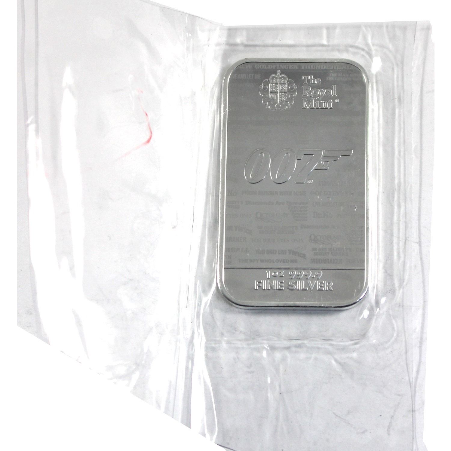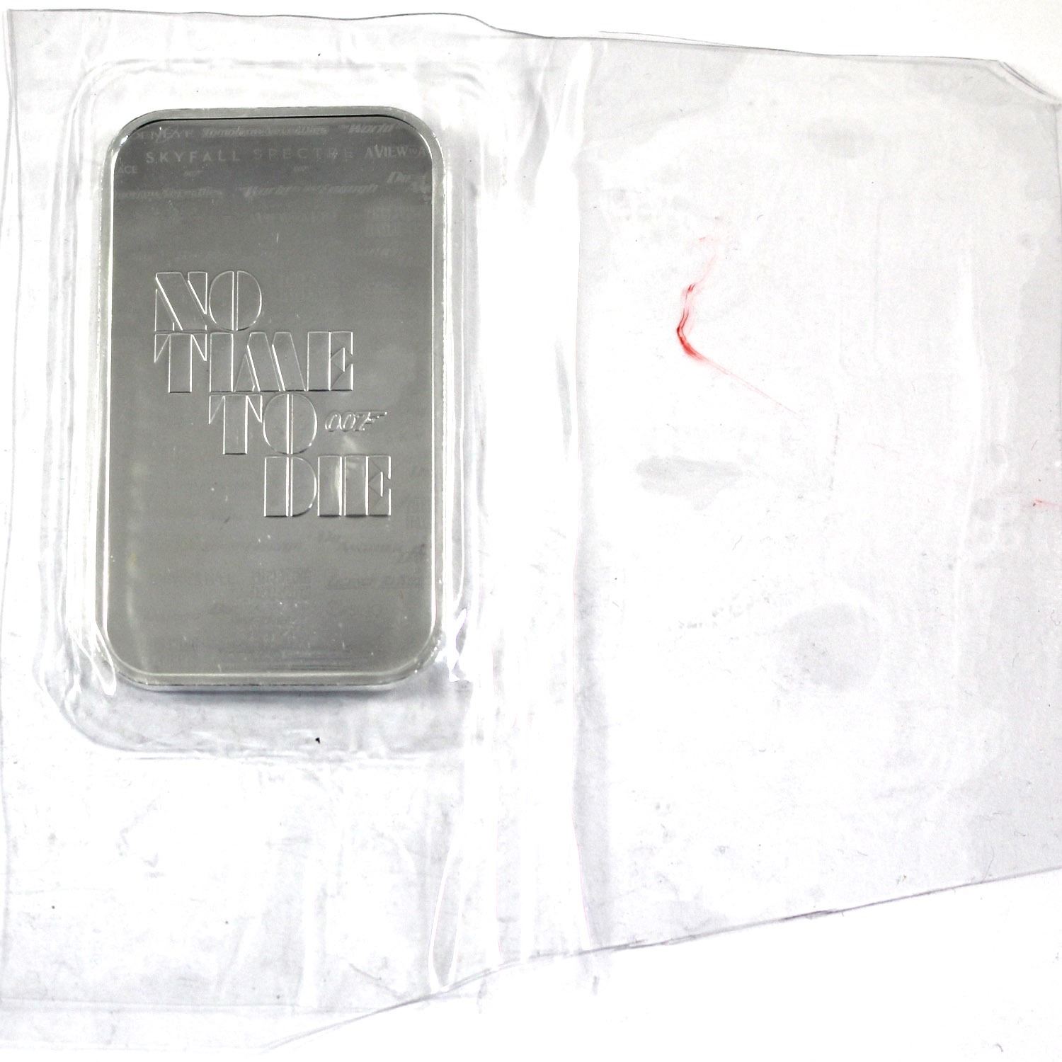 Unique Royal Mint 1oz Silver Bar '007 James Bond commemorative' "No Time to Die" on Reverse. A limited edition bar still sealed in original Pliofilm.