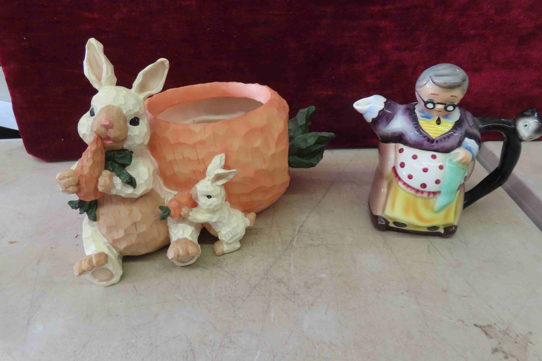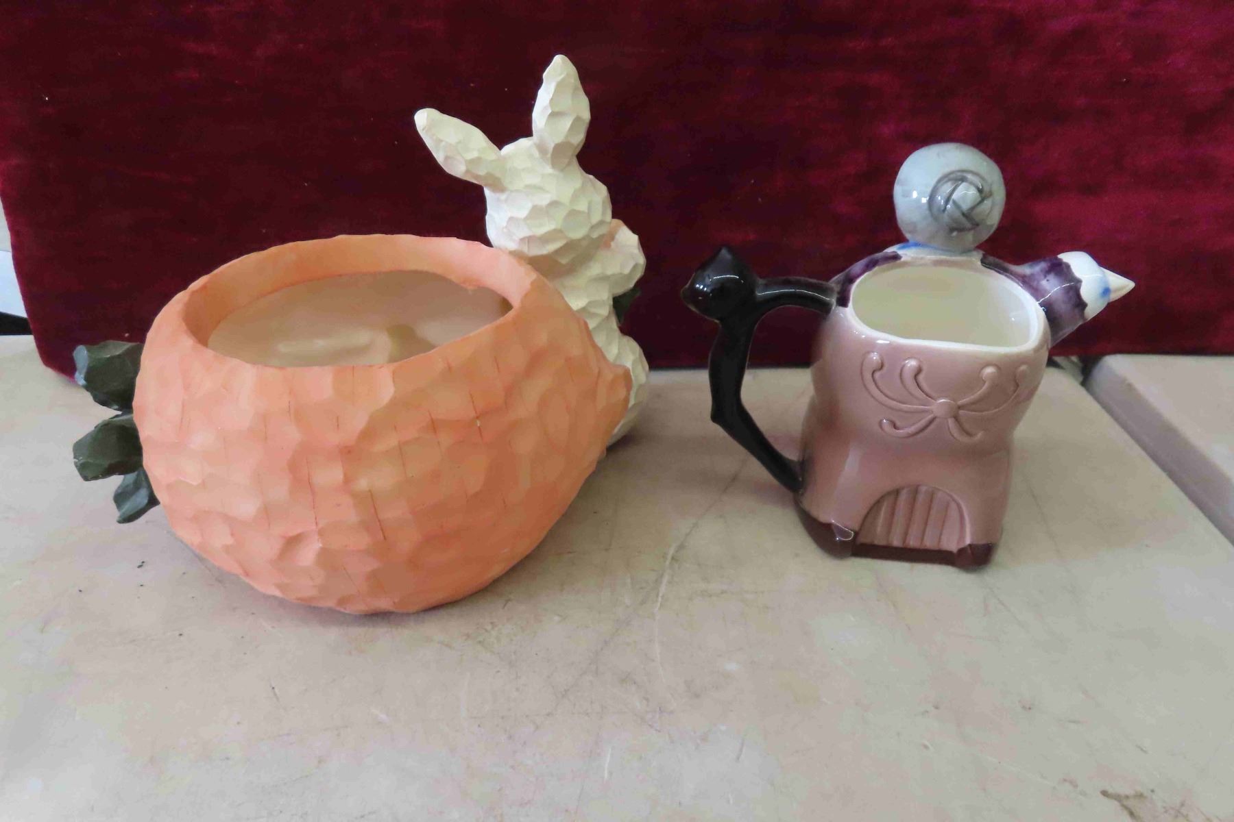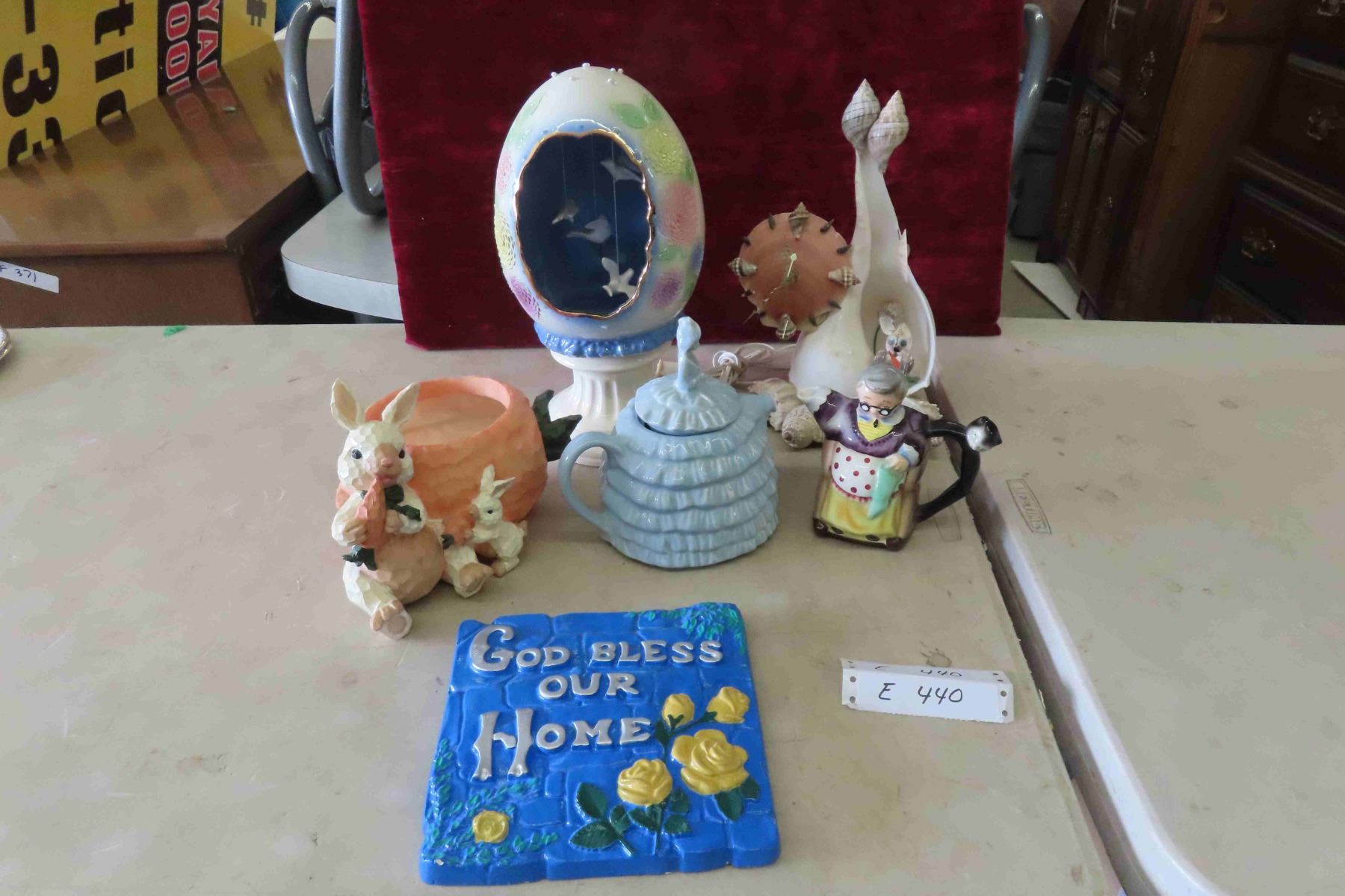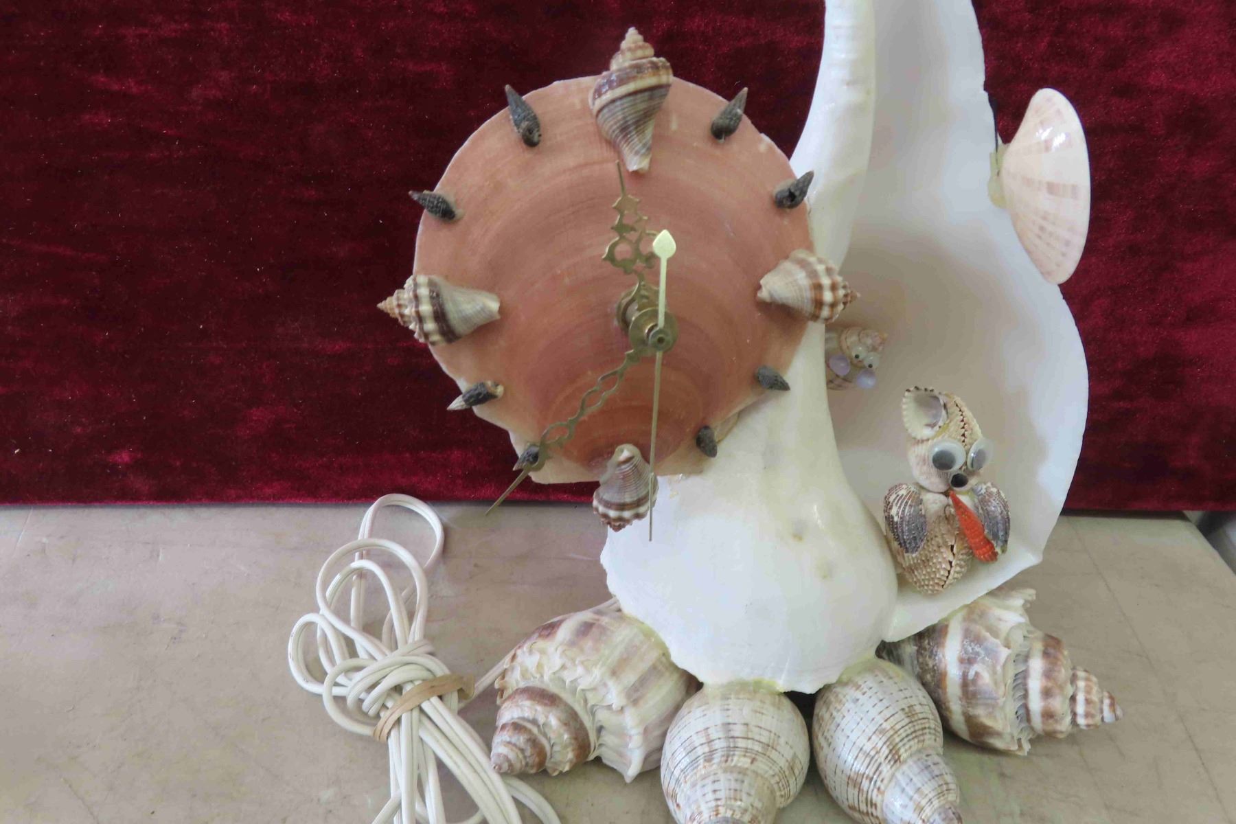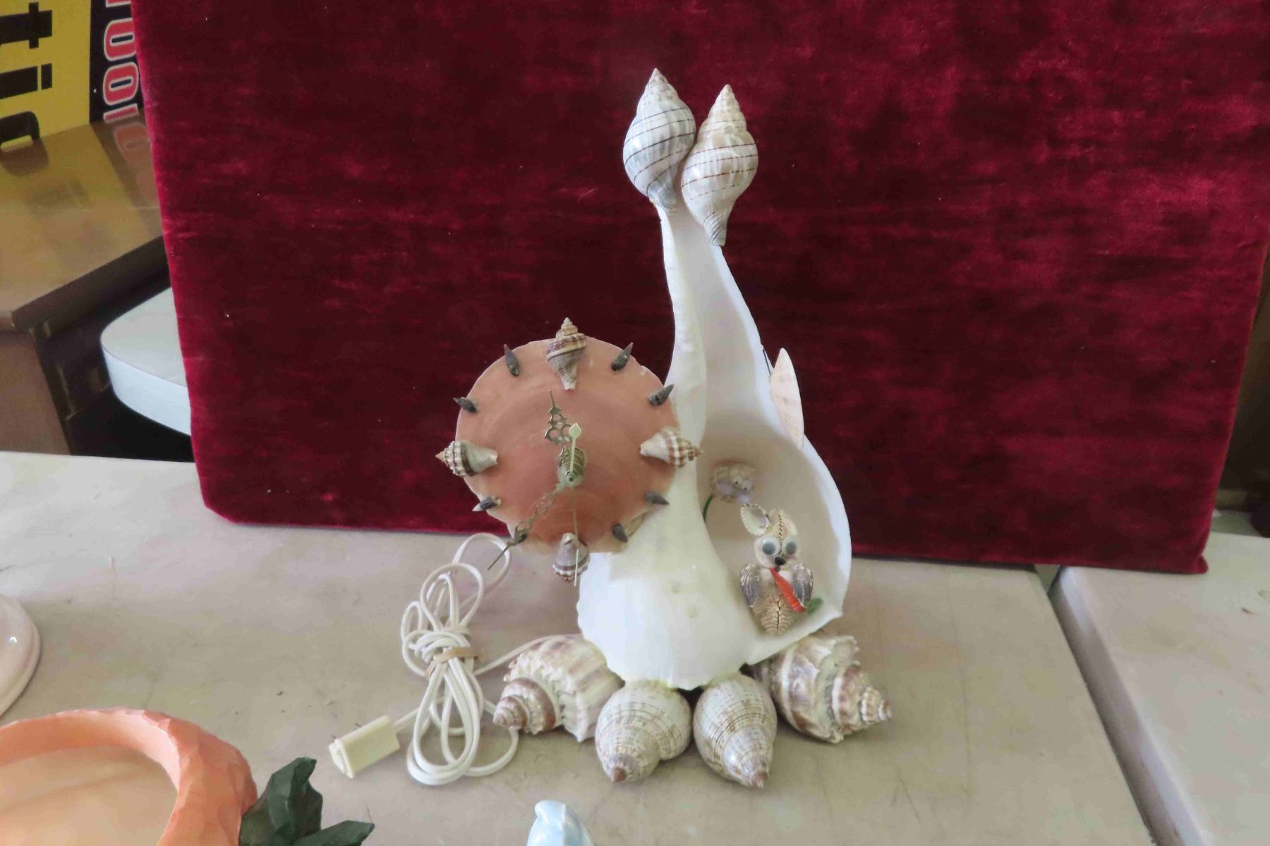 Unique Seashell Clock 12" High, Sadler Tea Pot, Chalkware Plaque 8"x 8"