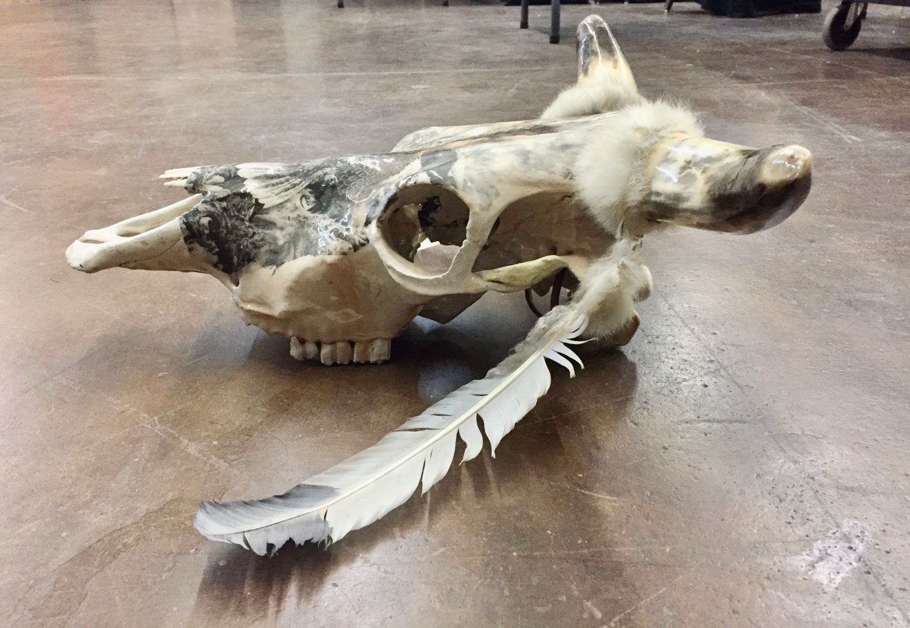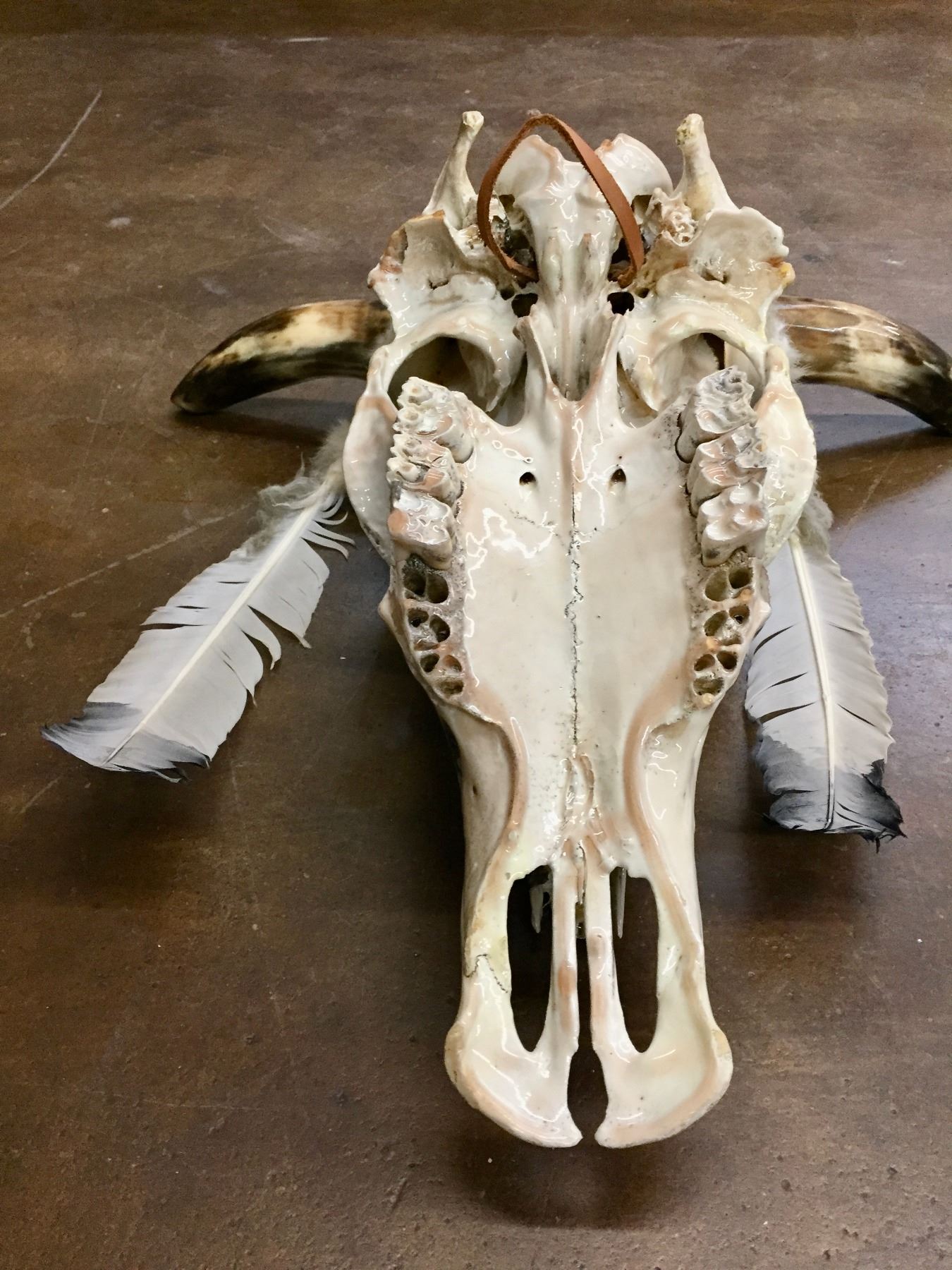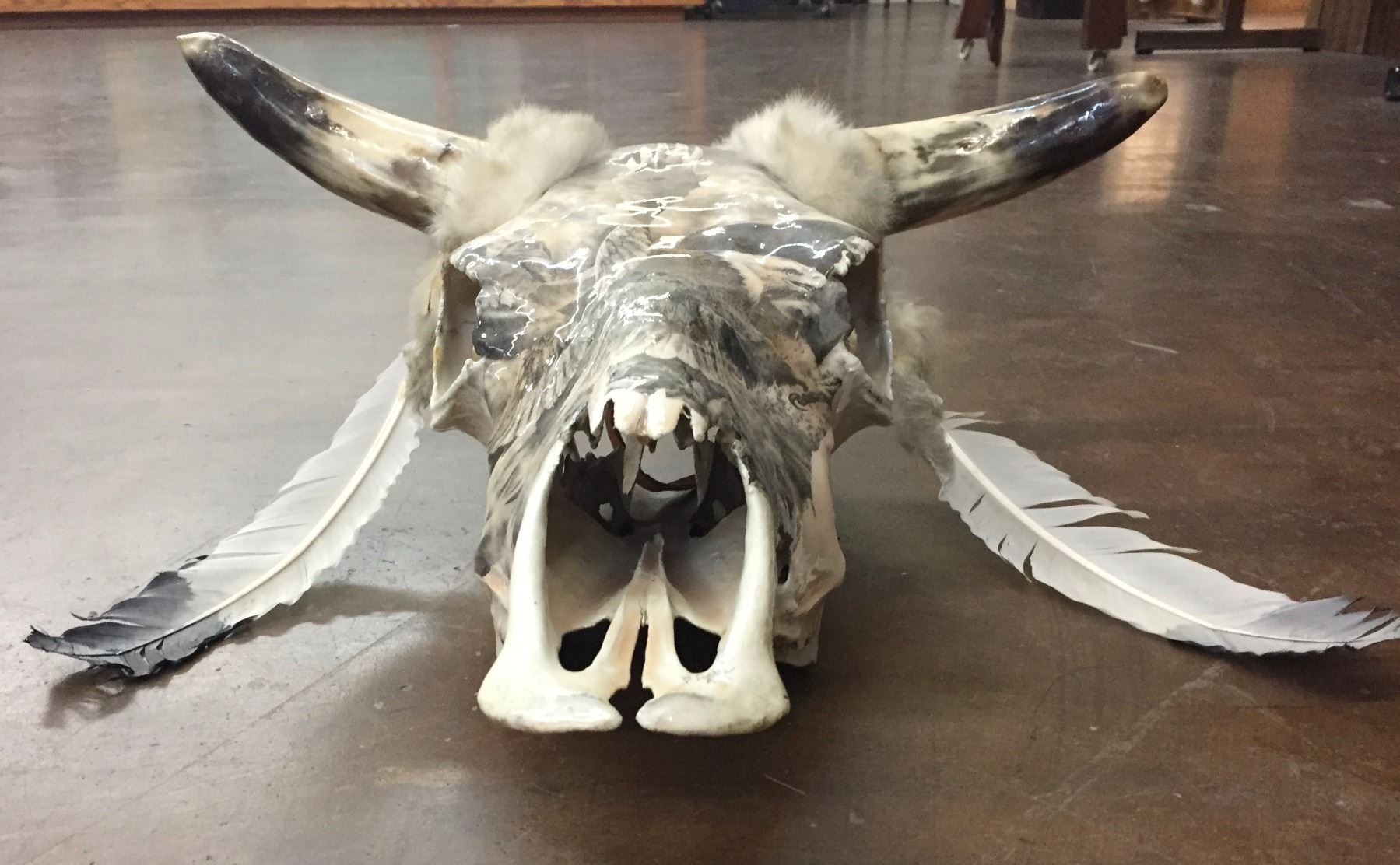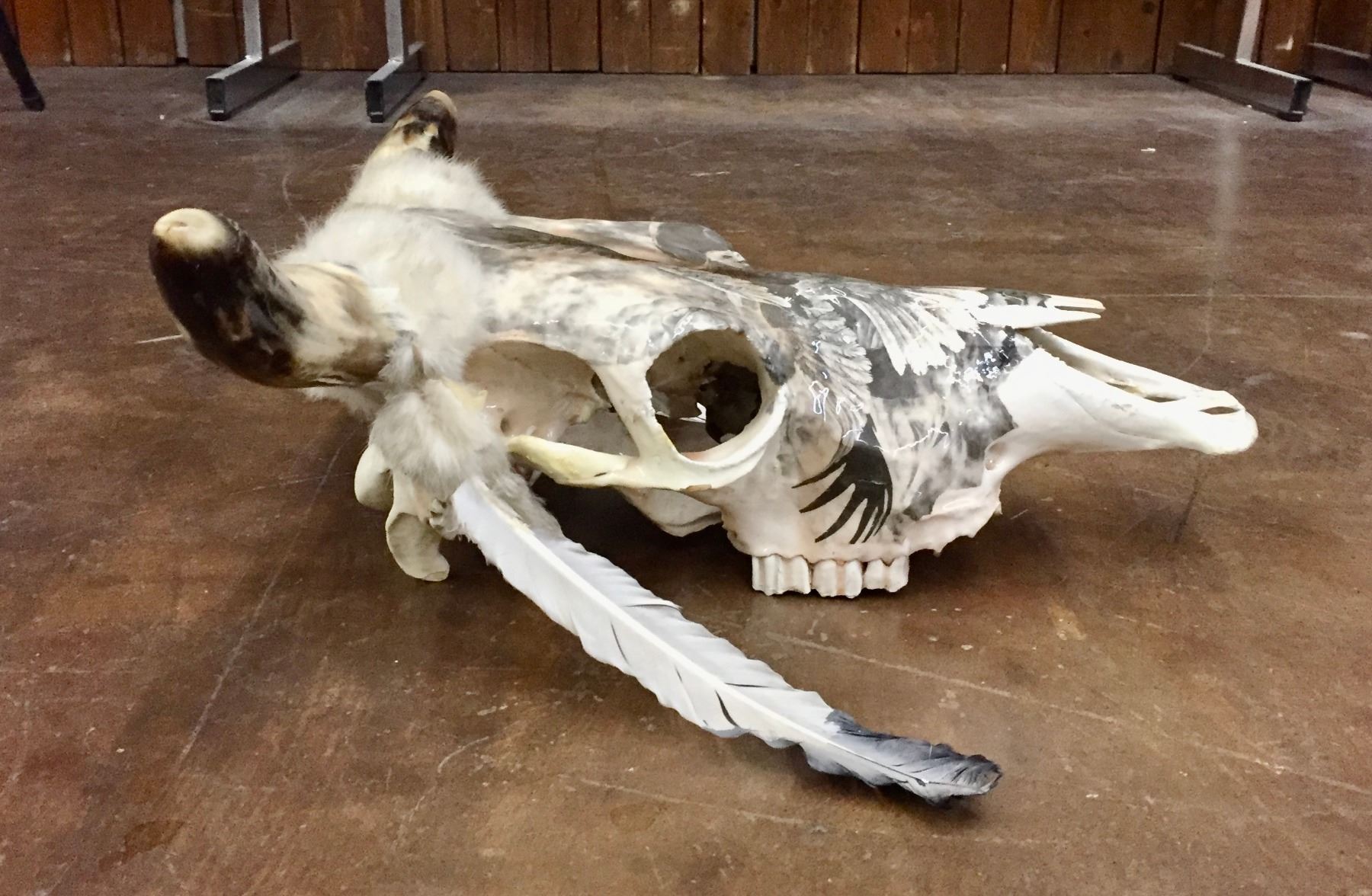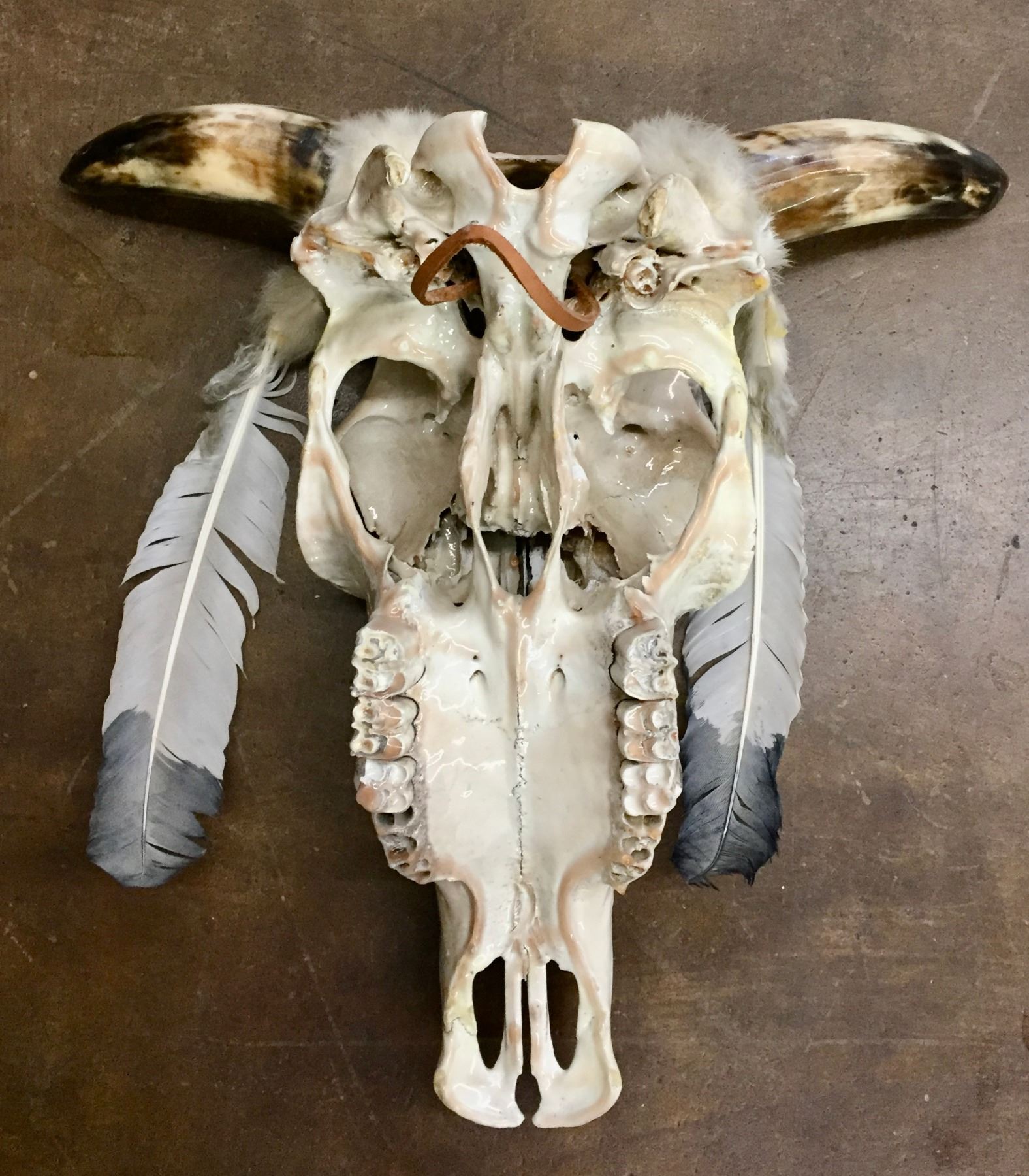 Description: For your consideration we offer for sale this unique steer head with feather accents and art depicting an Eagle, which was transferred to the head.