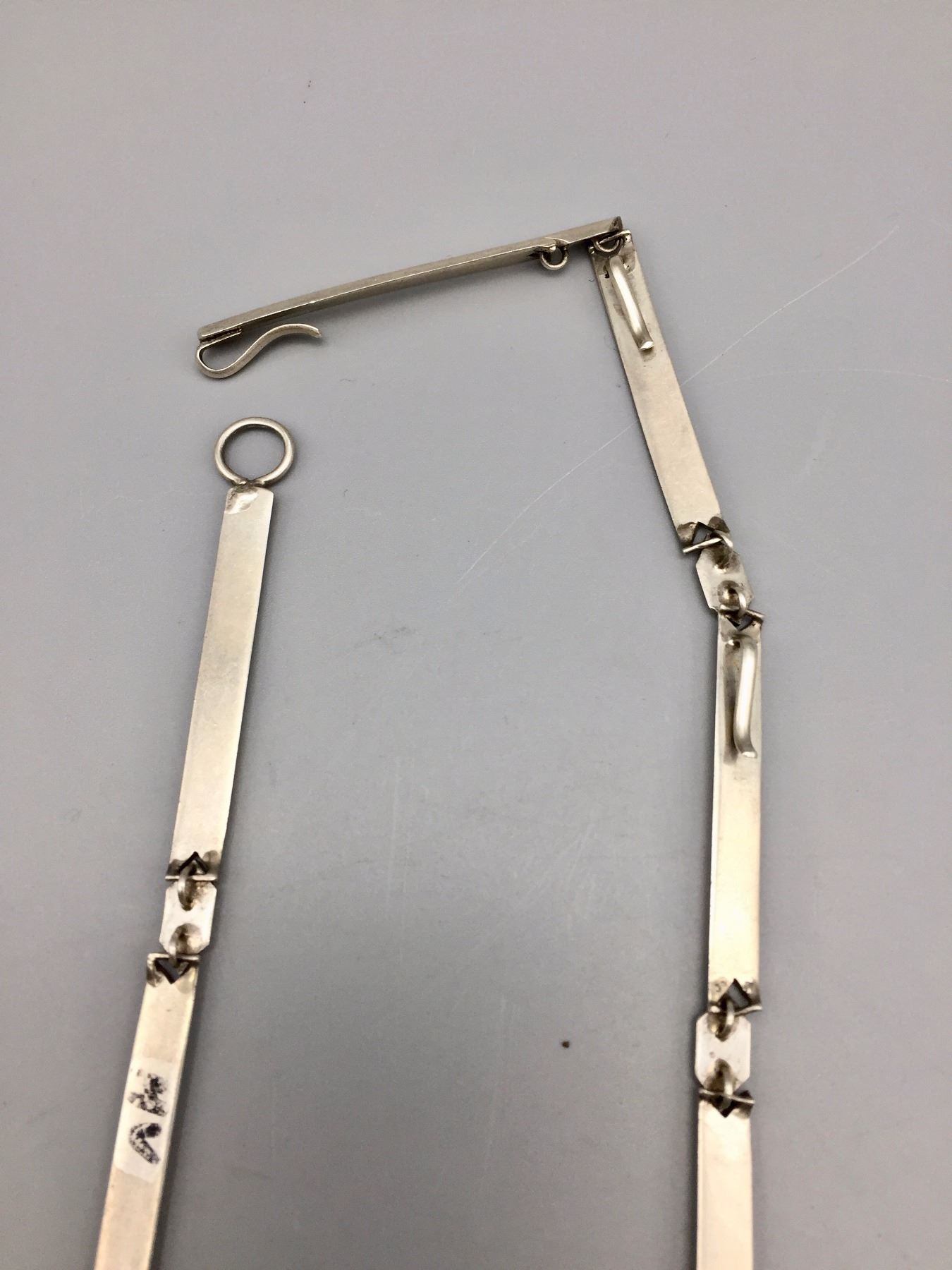 Description: Very unique sterling silver necklace. Maker: Unknown. Approx. Age: Fairly modern. Size: 36” around the neck and weighs 73.1 g. Condition: Good for its age, normal wear expected. Please look closely at the pictures - they are an important part of our description. Shipping: There will be a $5 handling / packaging fee for shipping this lot. The actual cost of postage will be added on top of that.