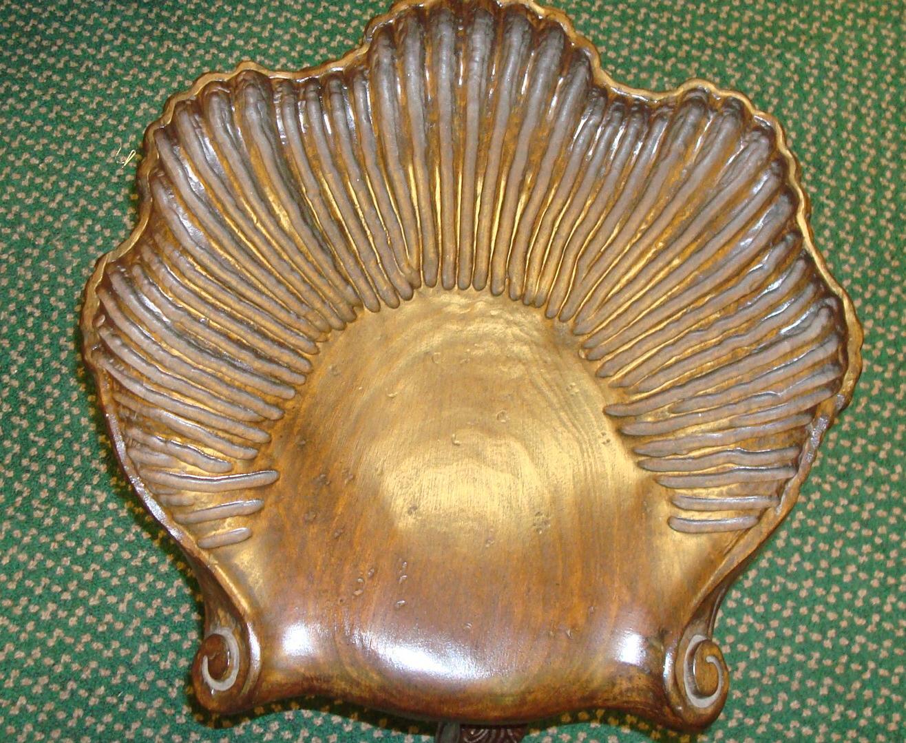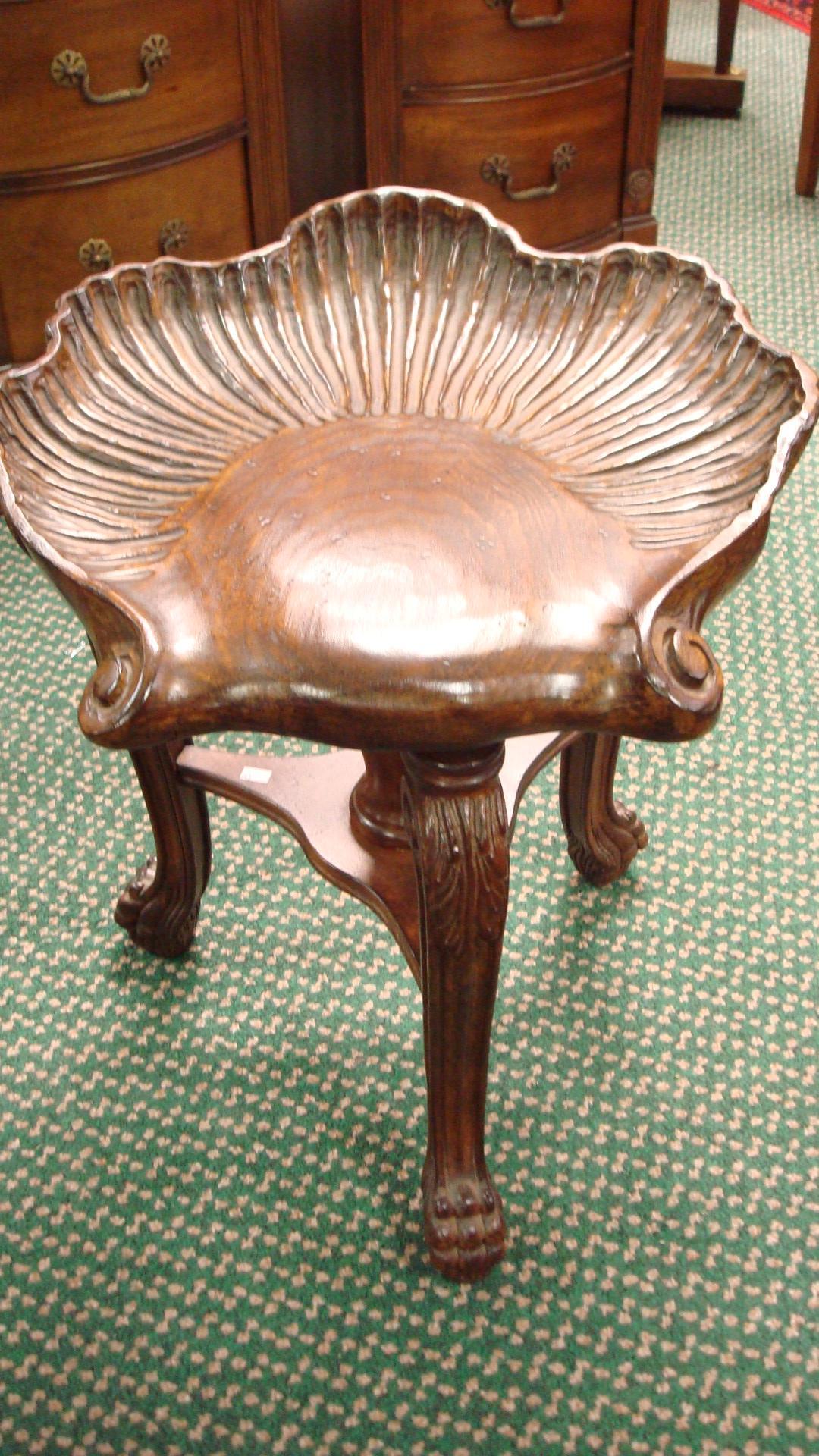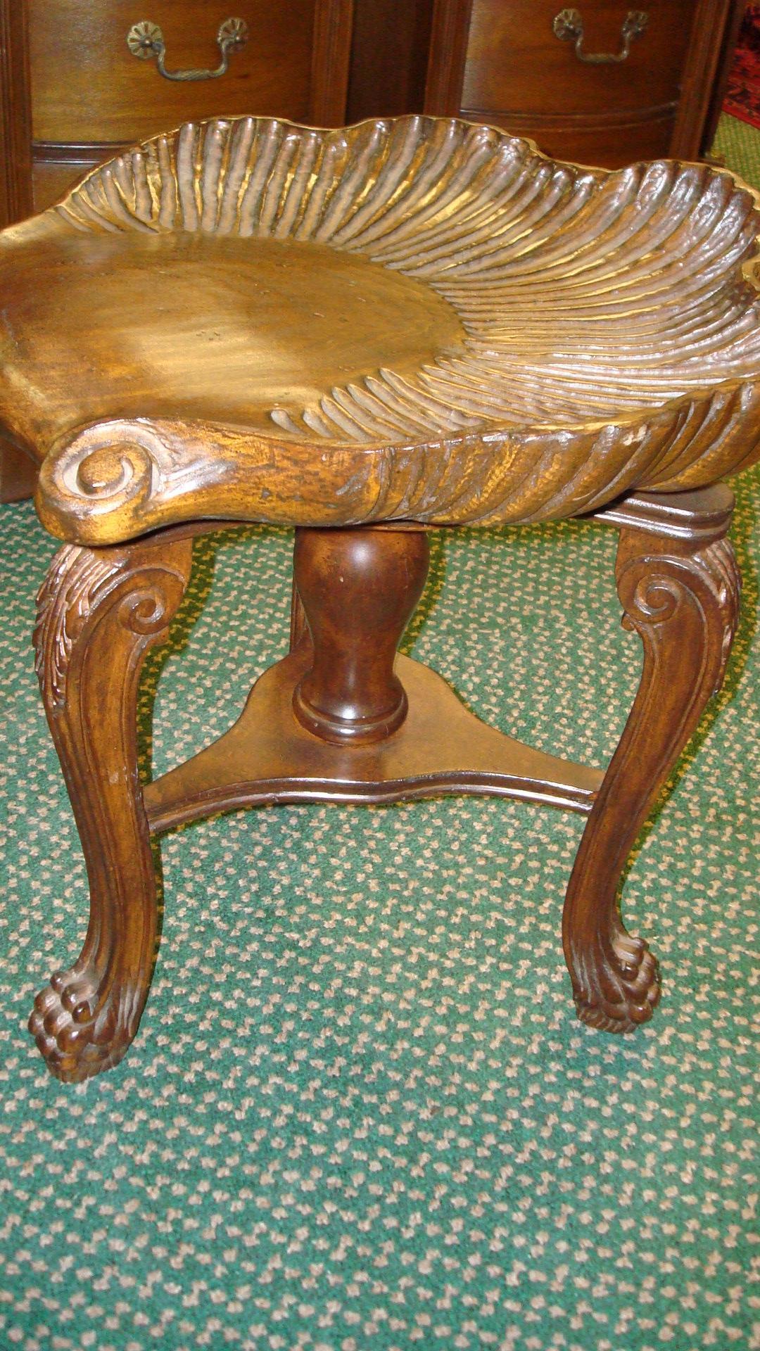 Unique Swivel Stool with Shell Carved Seat: Has Stylized Paw Feet on Cabriole Legs, Baluster Center Pedestal. Supports Shell Shaped Seat. 20"T.(100-200)