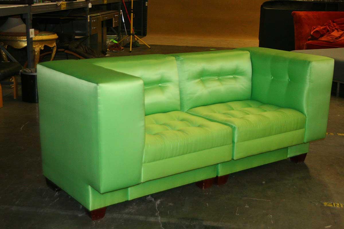 Tufted two piece Modern Sofa in Neon Satin Green 7' Long