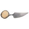 Measuring 5 1/2 inches overall, with an upturned, single edge blade measuring 3 1/8 inches. No markings are present, save for a small round dent on the right side of the blade, in the style caused by a Rockwell Hardness Test implement. Grip is oval shaped, with a raised grooved panel on the rear face, and a pair of smooth grip panels. Information provided by the consignor states the material as "sea ivory", which has not been positively identified.