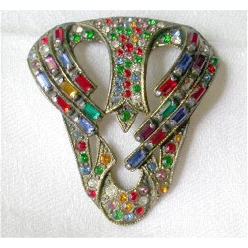 <tr><td>Title:Unique Vintage Colored Stones Dress Clip </td></tr>