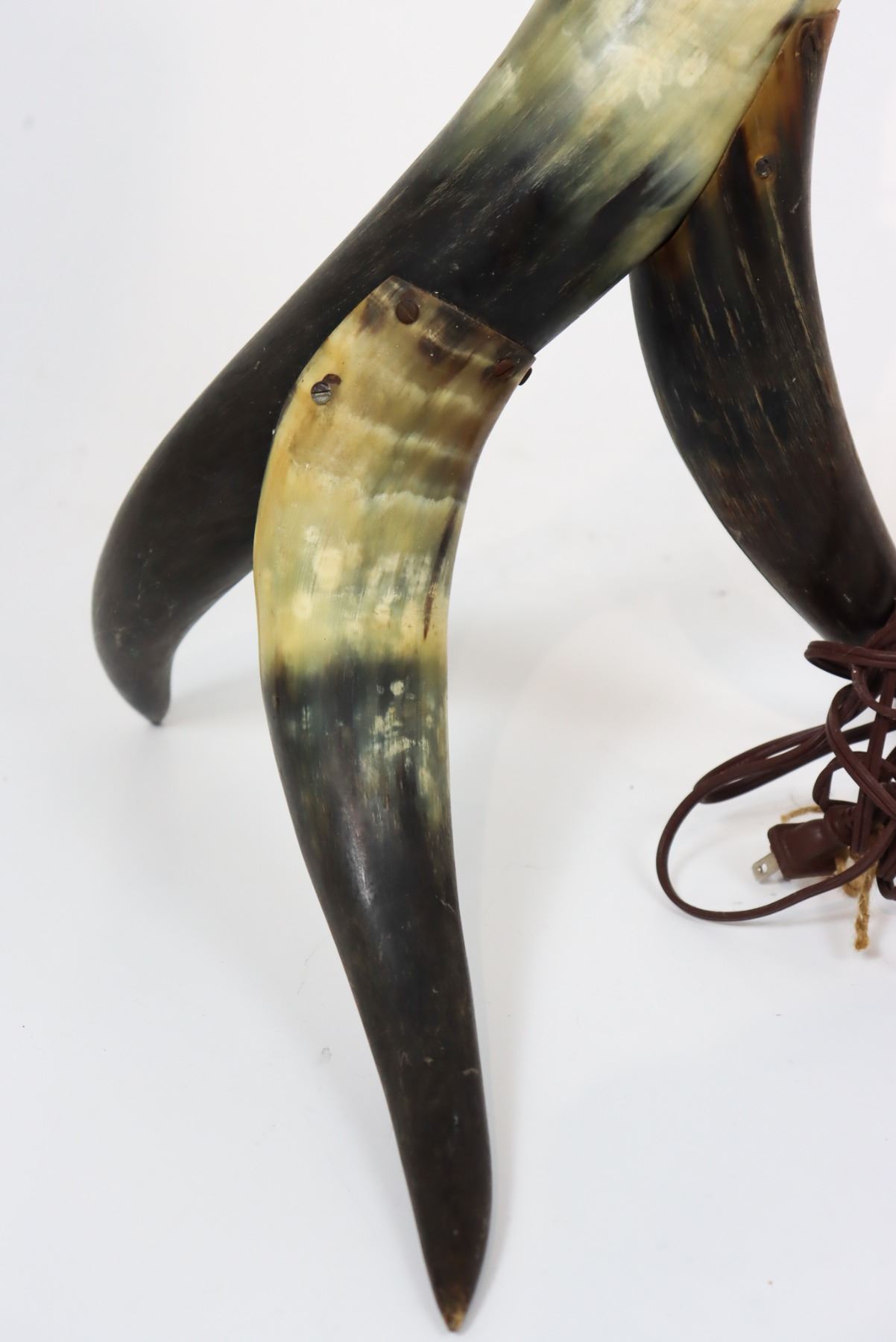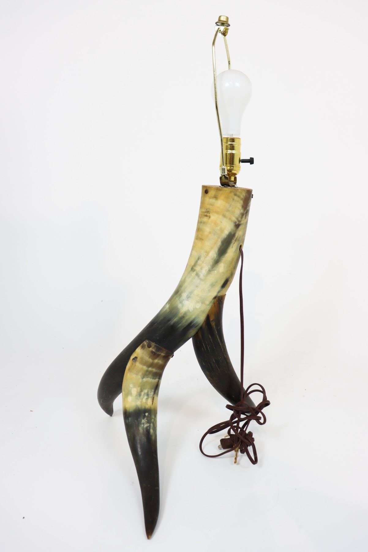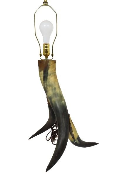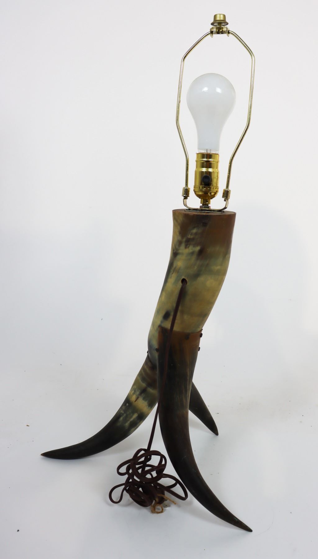 Western lamp, mounted horn with a unique tri footed form. Size: 29 x 13 in.