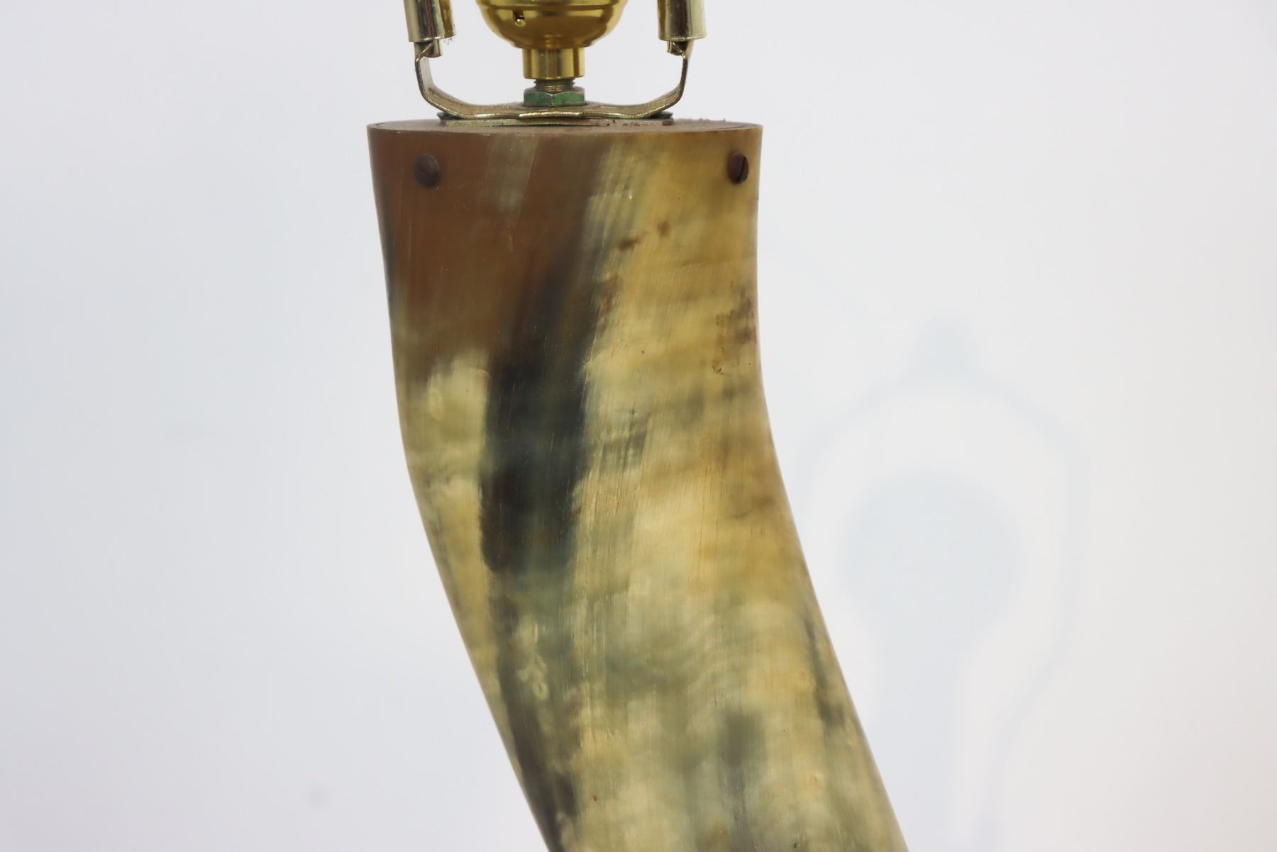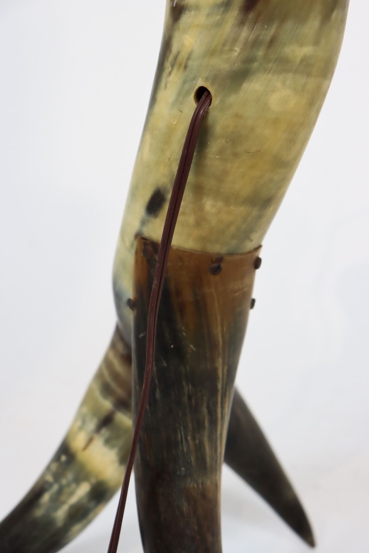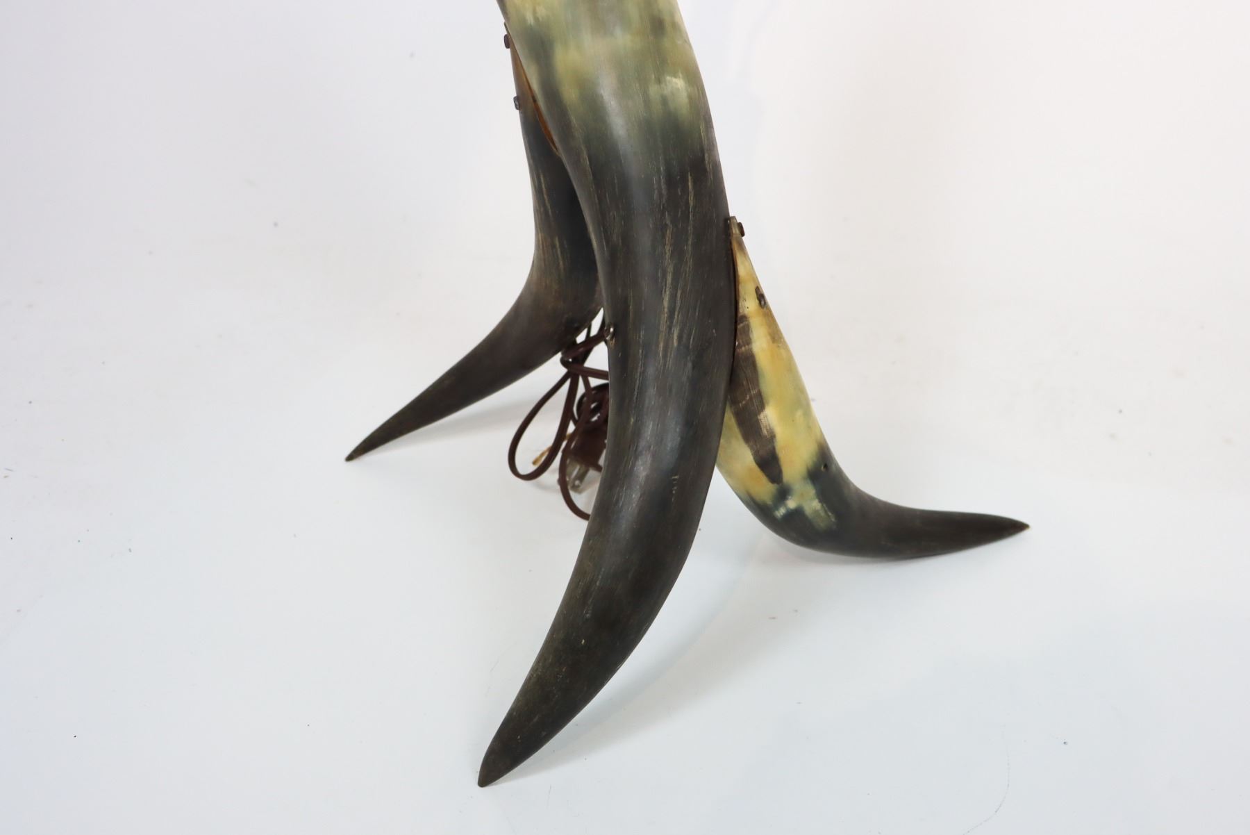 Western lamp, mounted horn with a unique tri footed form. Size: 29 x 13 in.