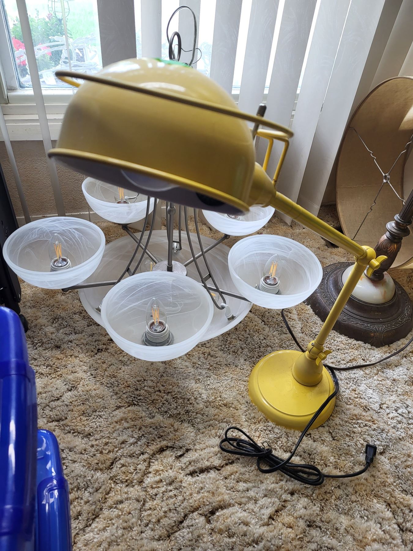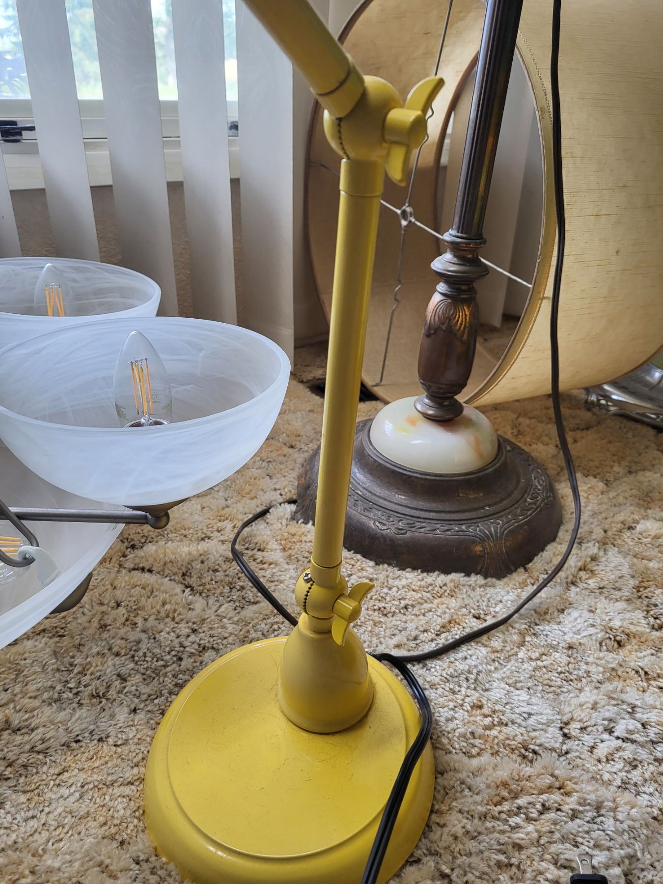 Unique Yellow Industiral Style Accent, Desk or Table Lamp - Working