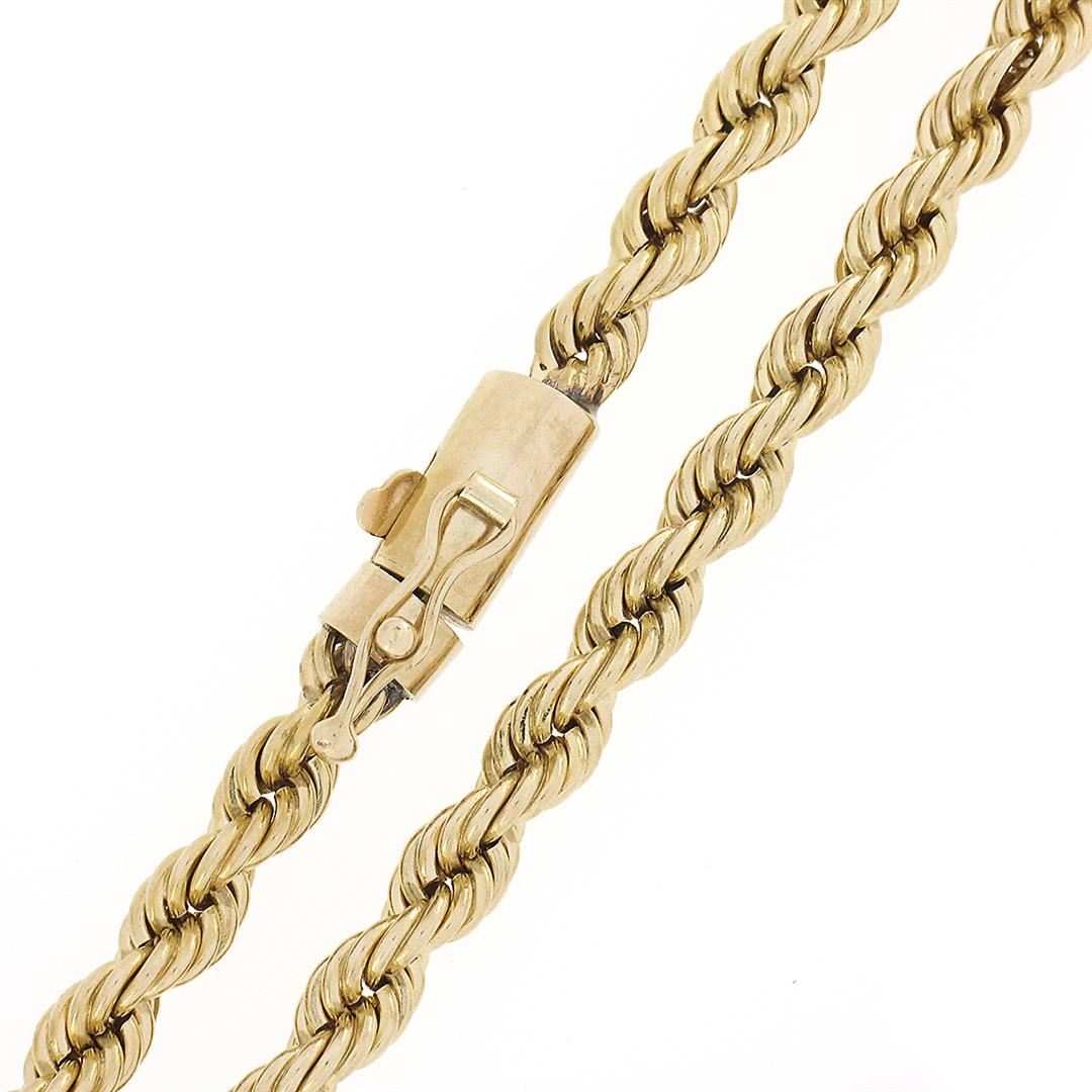 A solid 14k yellow gold rope link necklace. It weighs a total of 31.0 grams, measures 4mm wide, and measures 20.5 inches in length.