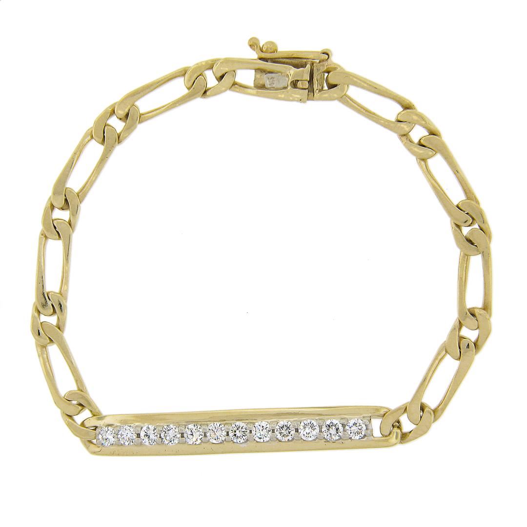Unisex 14k Yellow Gold 6.75" 0.85 ctw Diamonds ID Figaro Link Chain Bracelet