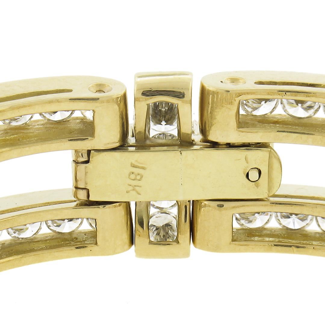 A solid 18k yellowgold wide bracelet, covered with 187 round cut natural diamonds (G/H - VS1/VS2 ; 14.9ctw). It weighs a total of 58.8 grams, measures 13.5mm wide, and measures 7.5 inches in length.