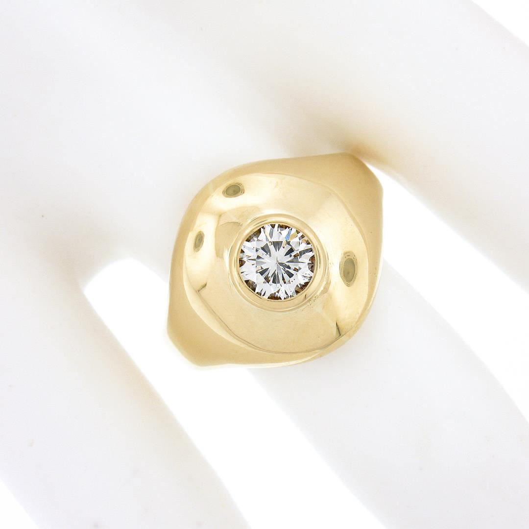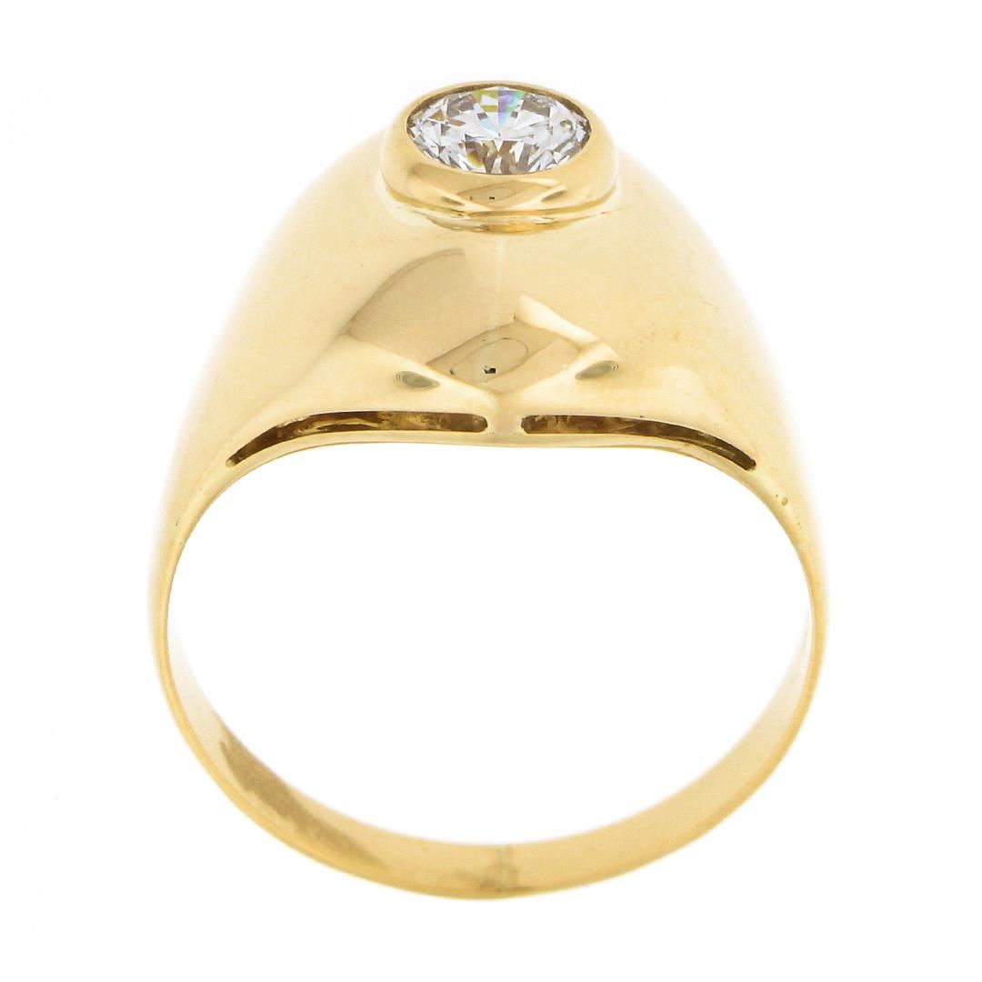 A solid 18k yellow gold dome solitaire band ring, with 1 round brilliant cut natural diamond (G - SI1 ; 0.73ct). The ring is size 9.0, weighs a total of 7.0 grams, and measures 15.8mm wide.