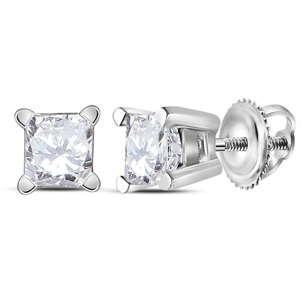 REF-54K5R - SKU: GD11451 ---- Unisex Diamond Solitaire Stud Earrings 1/2 Cttw 14kt White Gold