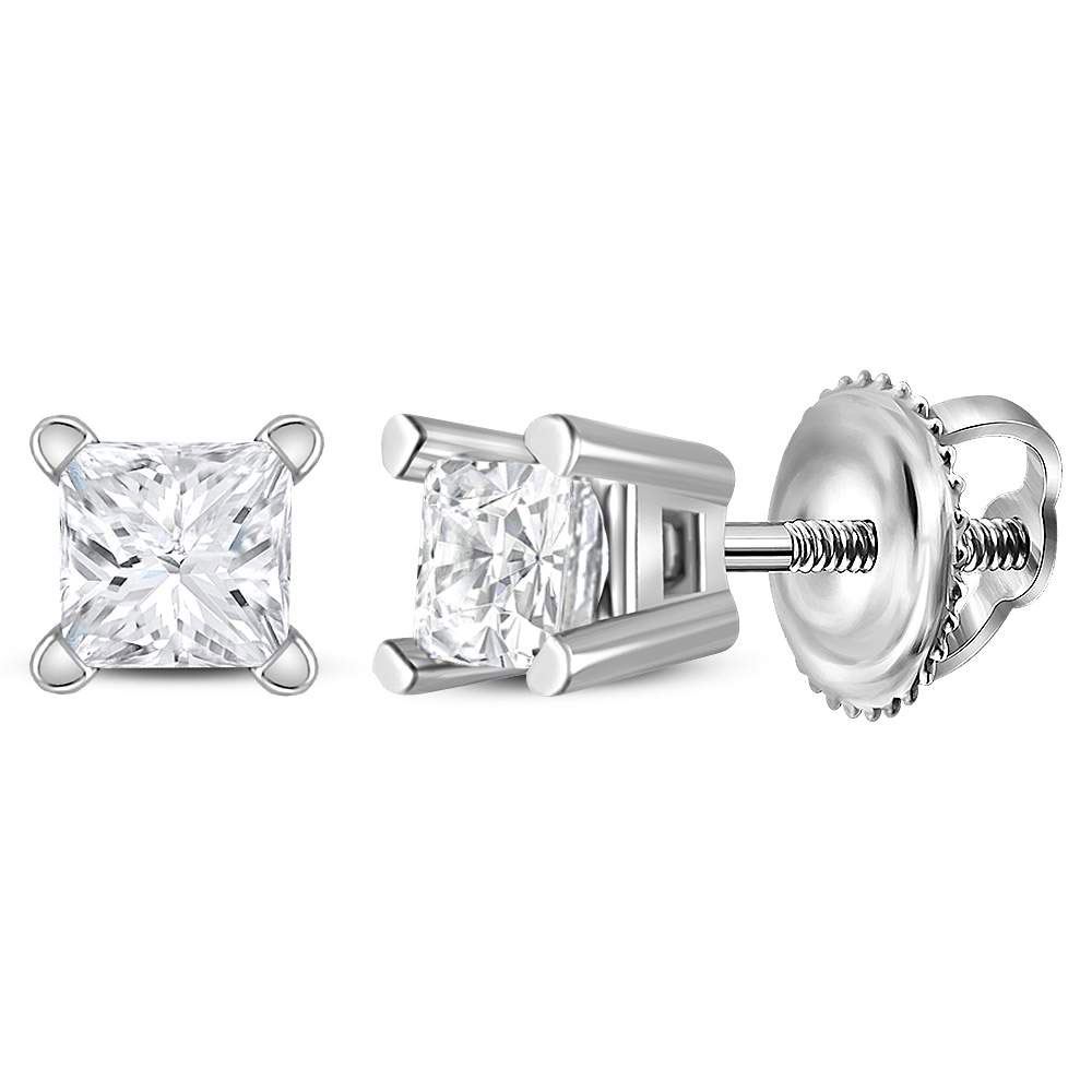 REF-17H3W - SKU: GD51740 ---- Unisex Diamond Solitaire Stud Earrings 1/5 Cttw 14kt White Gold