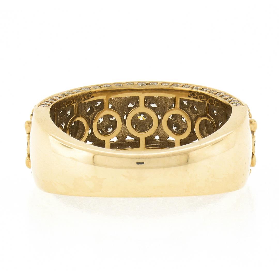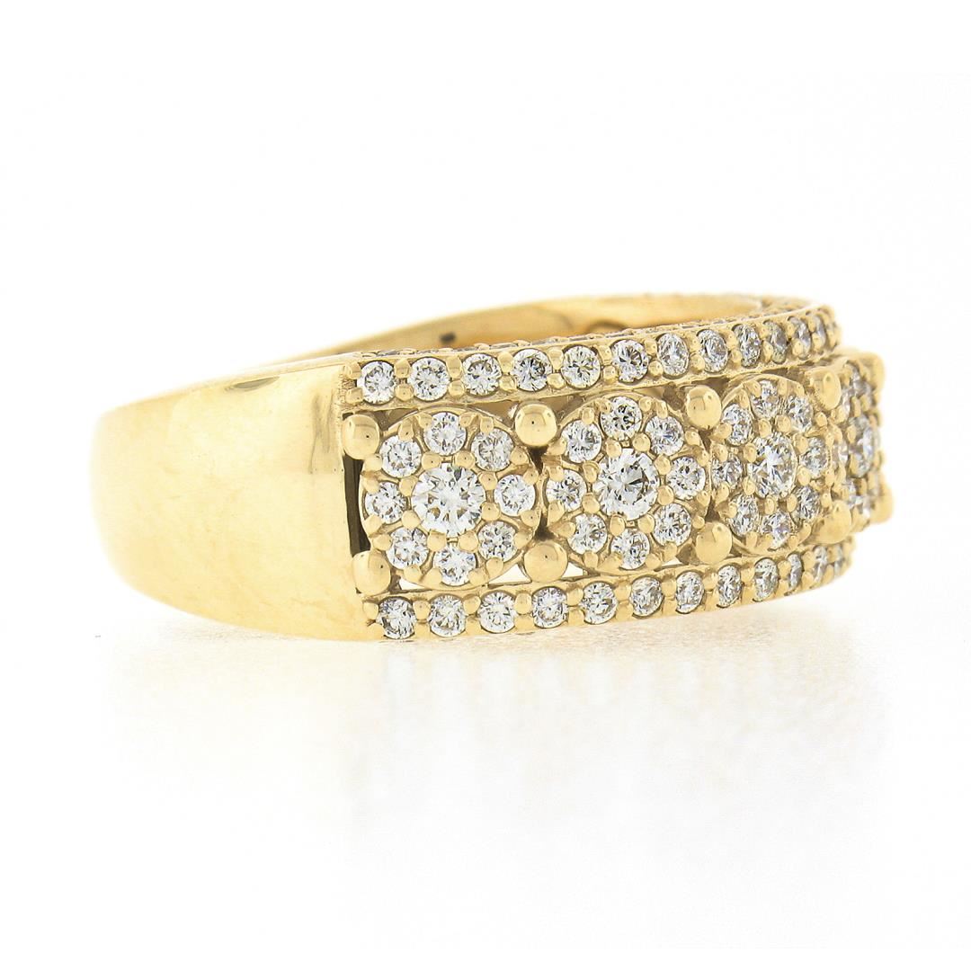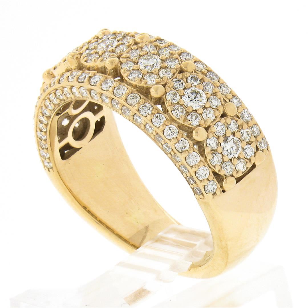 A solid 10k yellow gold cluster band ring, with 159 round brilliant cut natural diamonds (I/J - SI1/SI2 ; 2ctw). The ring is size 10.0, weighs a total of 8.34 grams, and measures 9mm wide.
