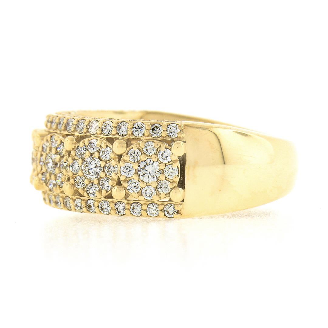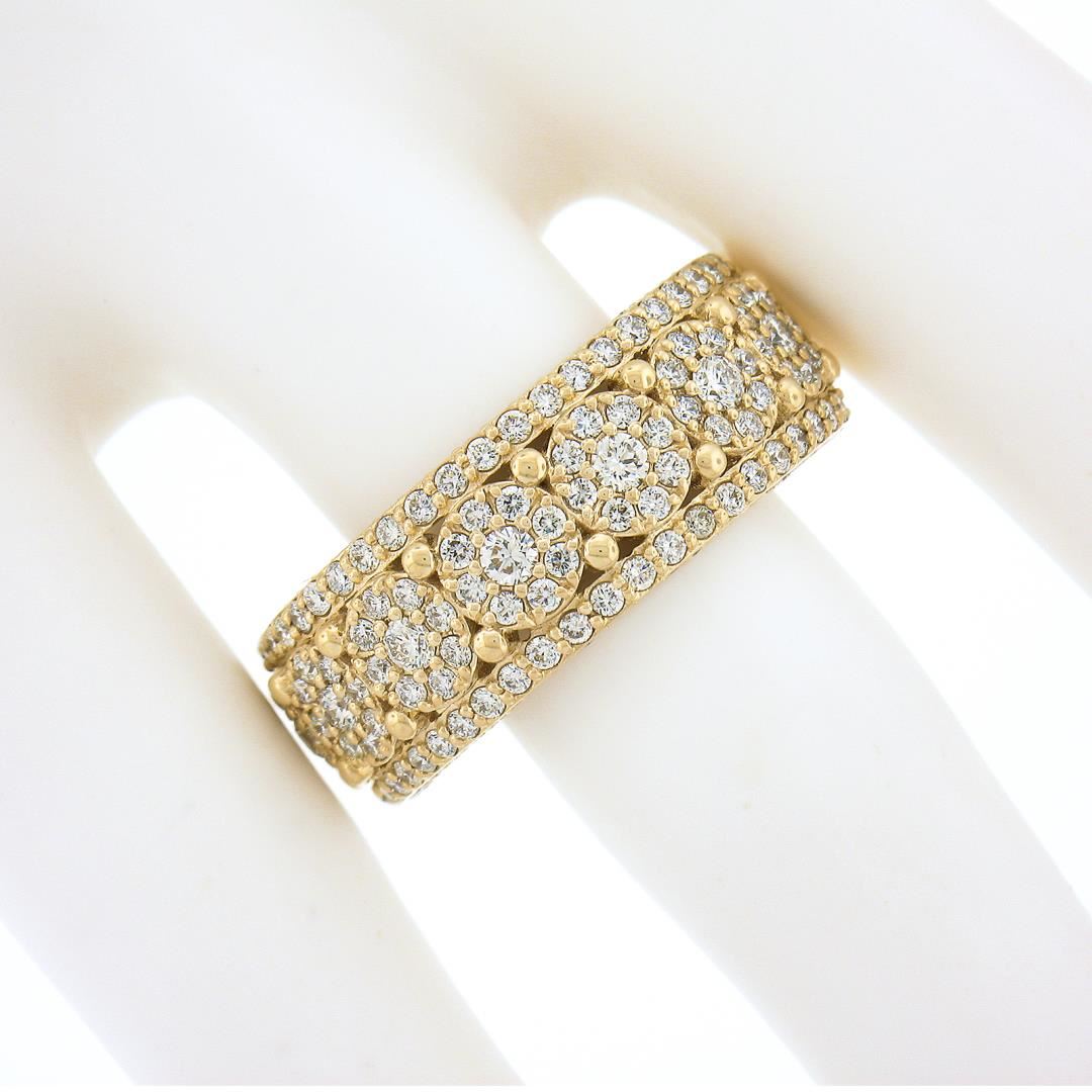 A solid 10k yellow gold cluster band ring, with 159 round brilliant cut natural diamonds (I/J - SI1/SI2 ; 2ctw). The ring is size 10.0, weighs a total of 8.34 grams, and measures 9mm wide.