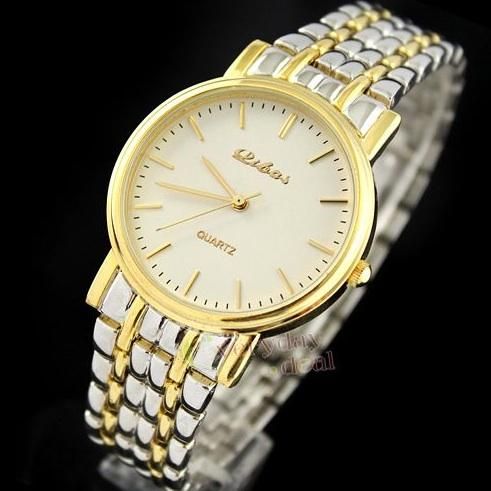 Unisex Silver and Gold Tone Ultrathin Wrist Watch