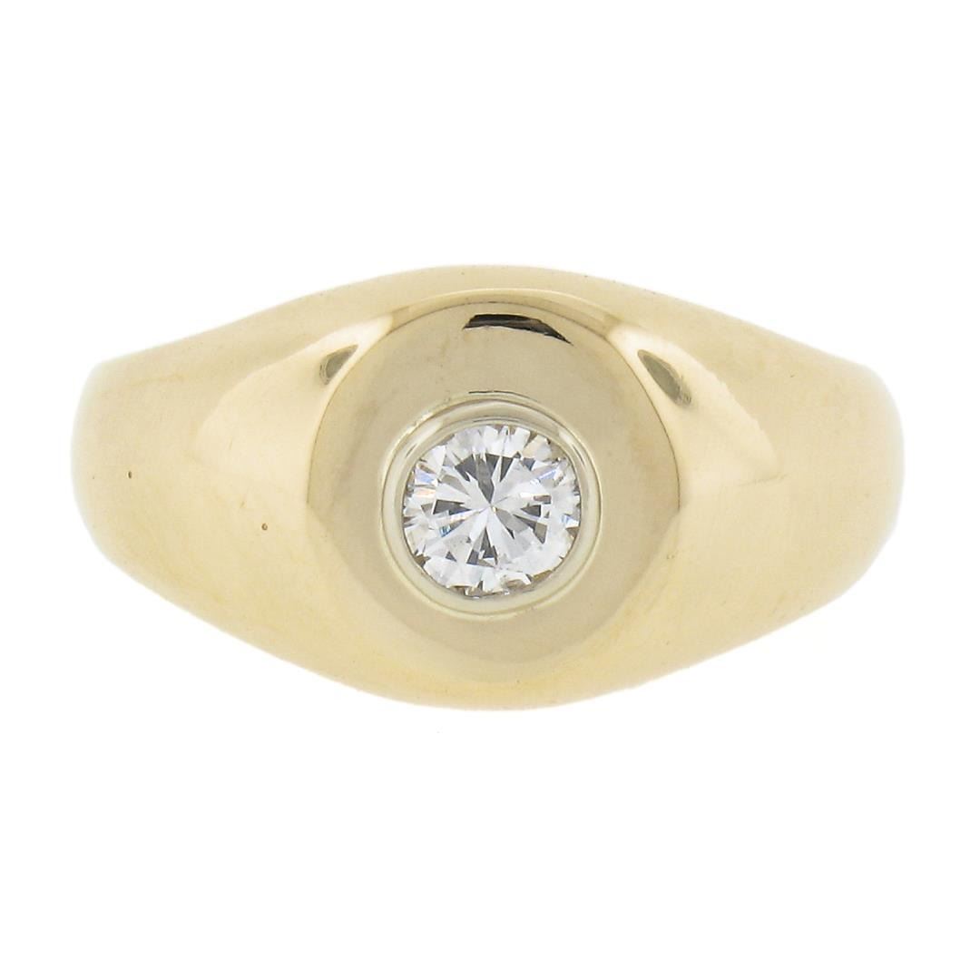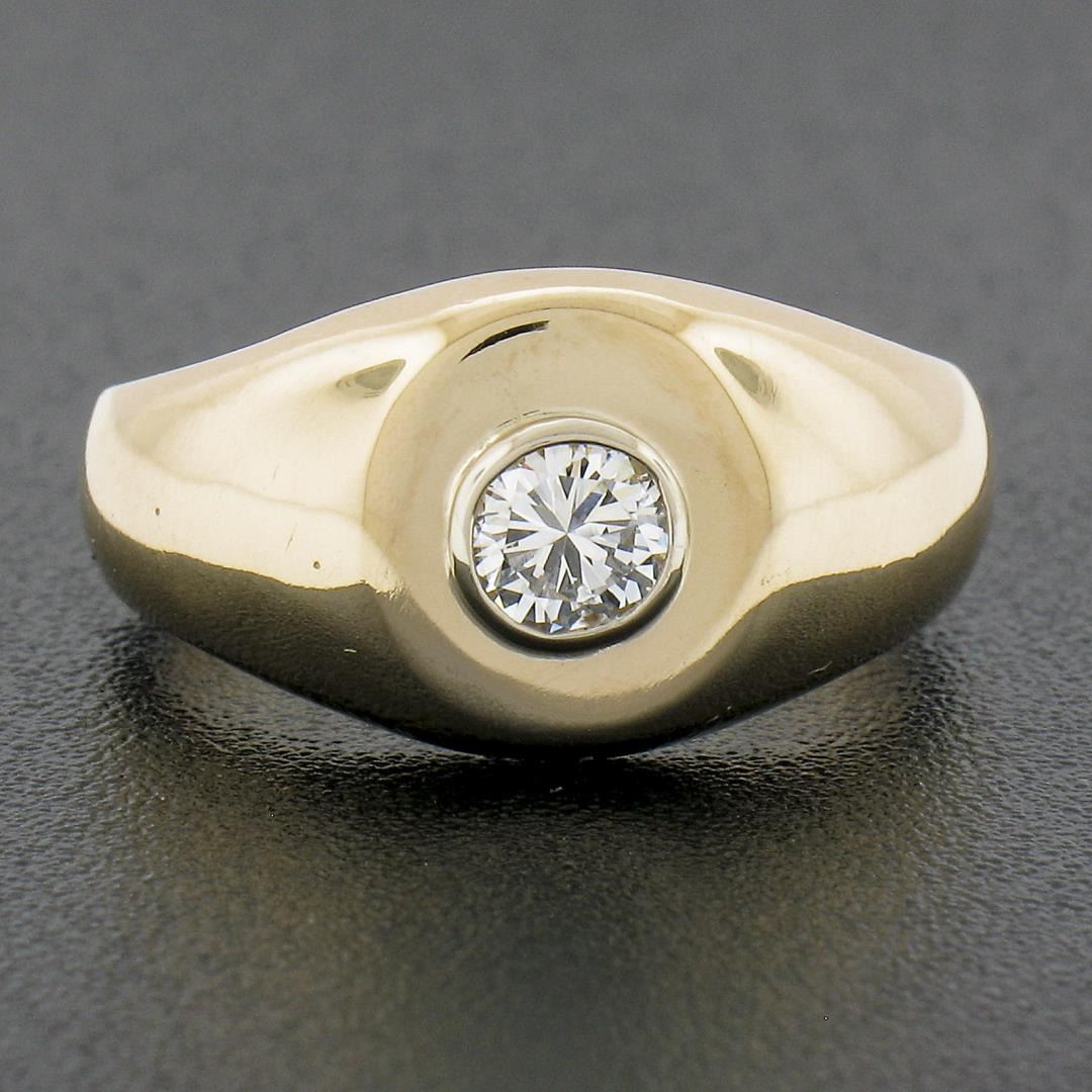 Unisex Solid 14k Gold 0.21 ctw Round Cut Diamond Bezel Solitaire Signet Band Rin