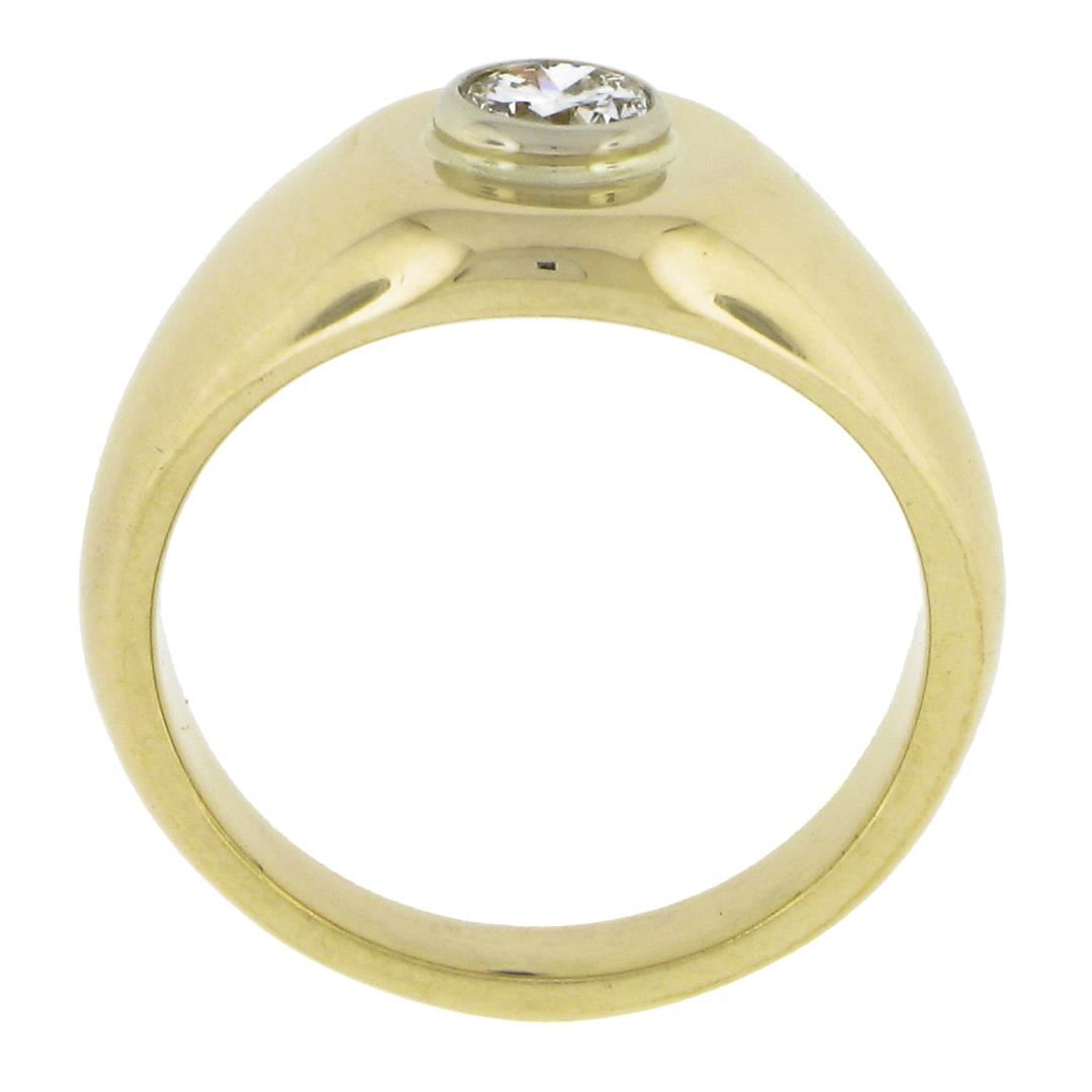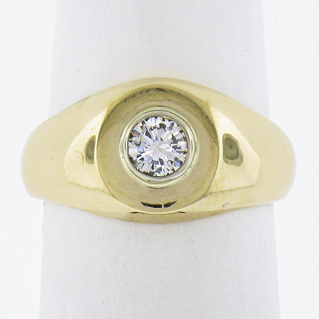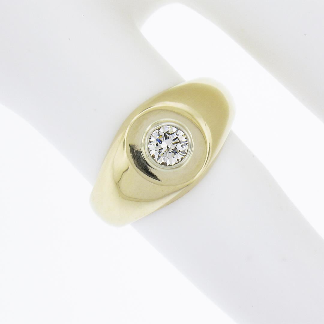 A solid 14k yellow gold signet ring, with1 round cut natural diamond (G - SI1 ; 0.25ct). The ring is size 4.0, weighs a total of 4.80 grams, and measures 9.3mm wide.