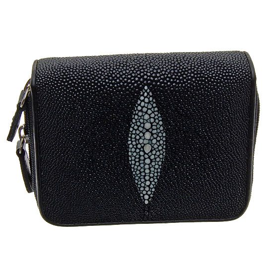 Well made brand new Stingray Hide clutch purse/wallet; 2 zippered main sections multiple accordian card slots and zippered coin section; clear id sction outside; 4" x 3" x 1.25";