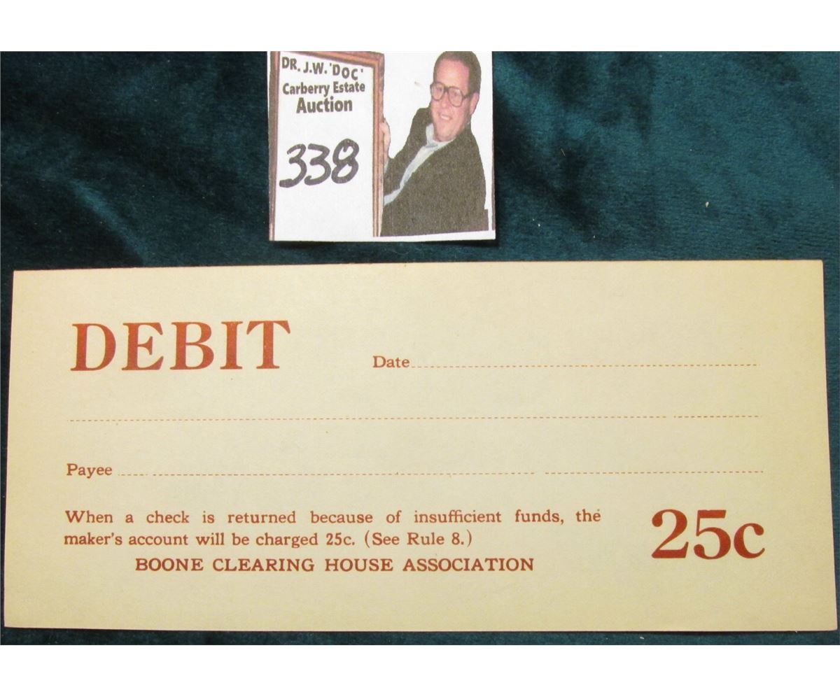 Unissued "Boone (Iowa) Clearing House Association … 25c Debit" Depression Scrip, Unissued. Unknown.