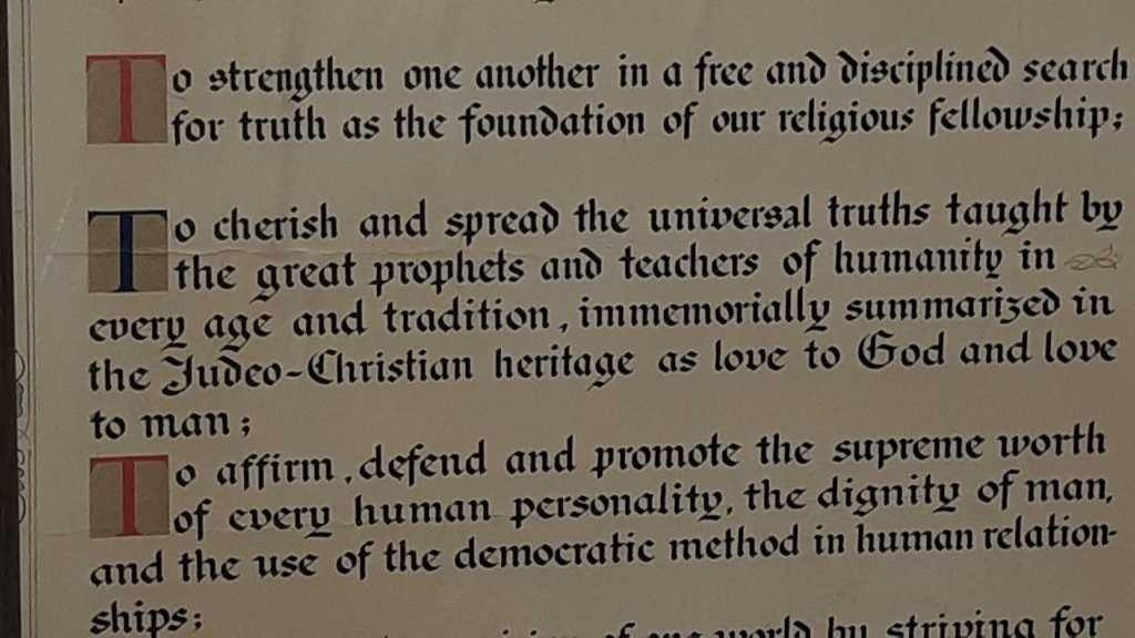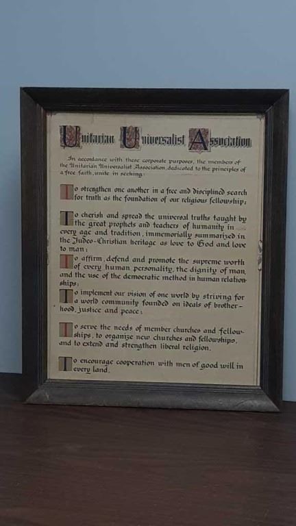 Unitarian Universalist Association Charter 19 in by 23 in original hand-made