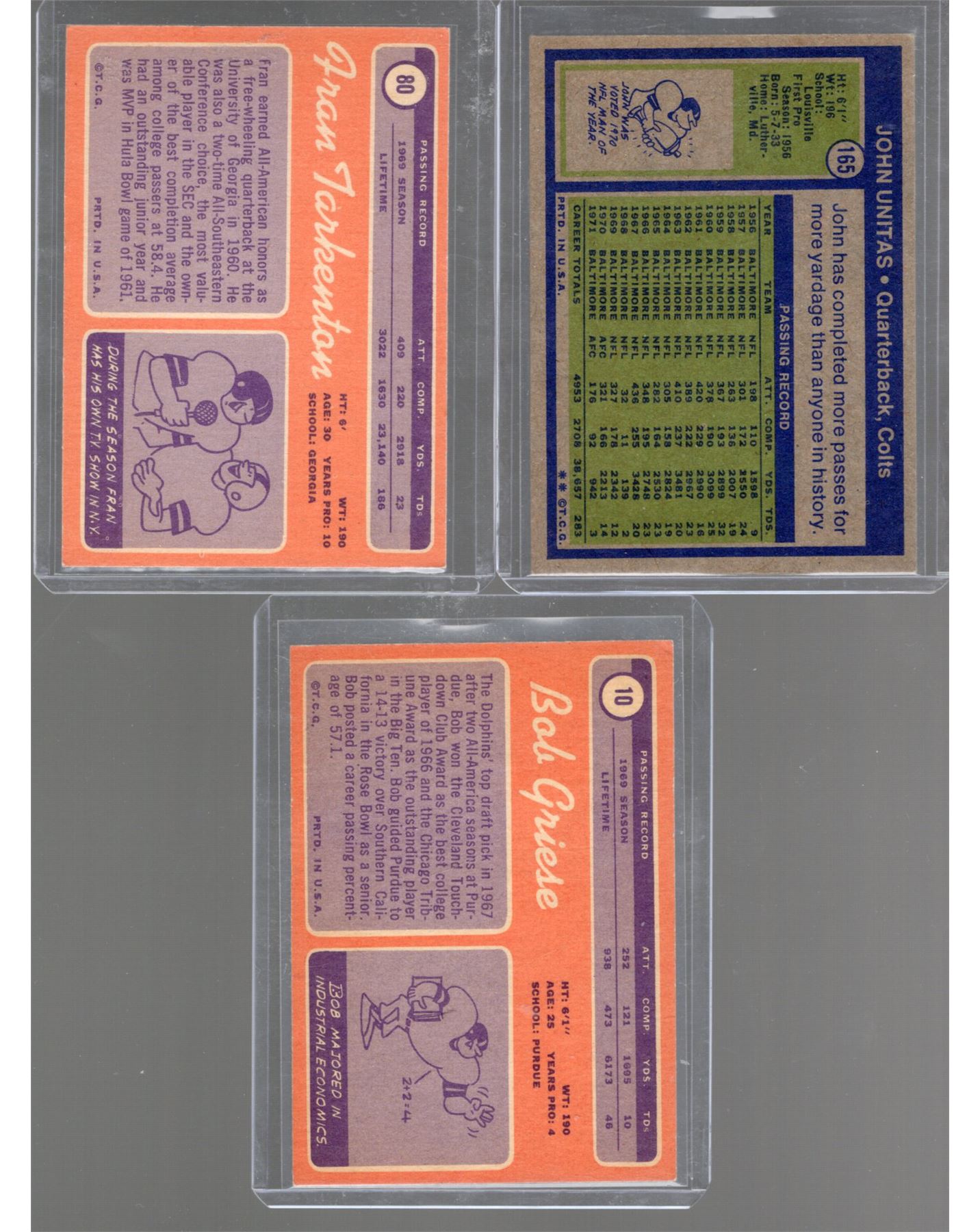 Unitas, Griese, & Tarkenton All in very very good condition