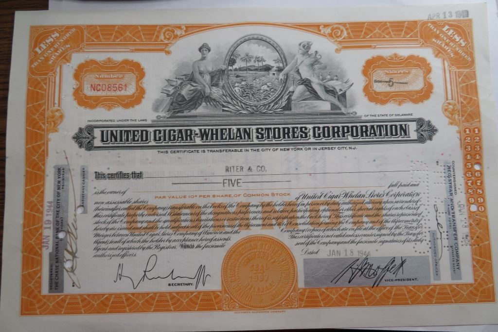 A collectible stock certificate. Exact item in image. Collectible historical document from the Nations past.