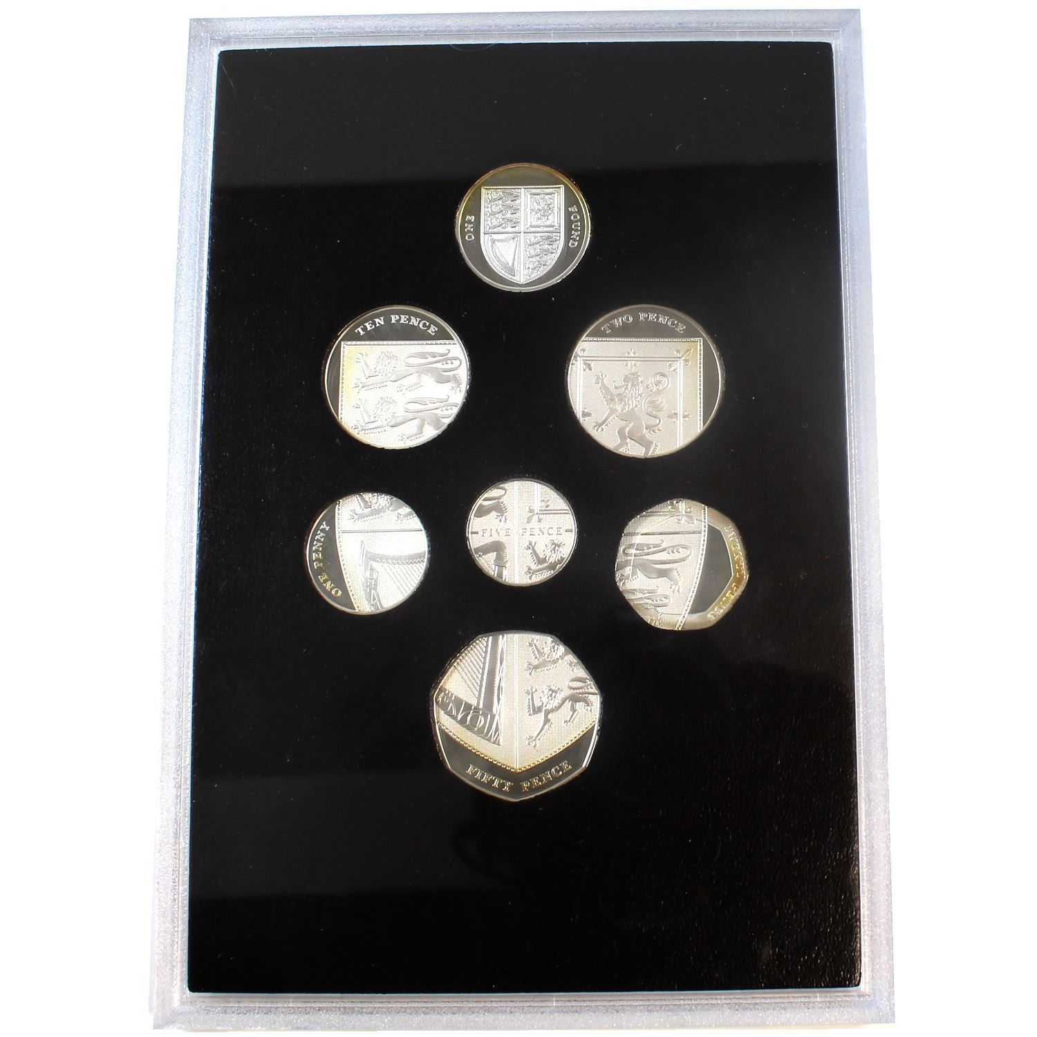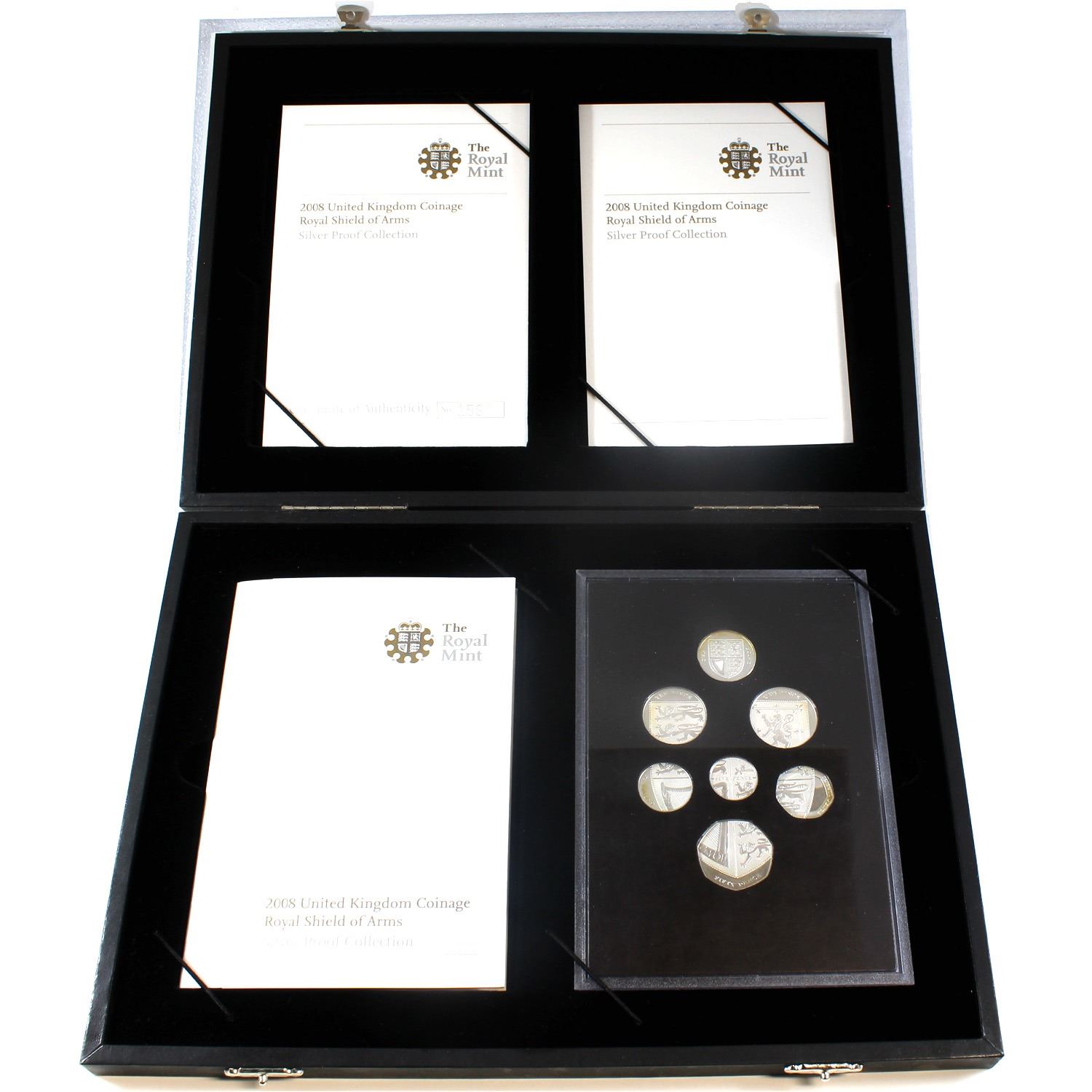 United Kingdom 2008 Royal Shield of Arms 7-coin Silver Proof Collection. Please note coins are toned.