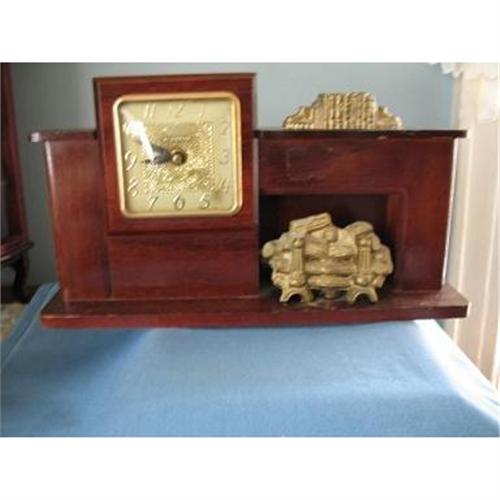 This vintage solid wood electric mantle clock was made by the United Clock Corporation of Brooklyn, N.Y.and is marked:Use on AC current only/60 cycle-115 volt-2W/Manufactured Exclusively by United Mantle Clock Corp./Brooklyn, NY/Model #420. The United Clock Corp. of Brooklyn, NY, 1930s-1960s, is famous for novelty clocks. These relatively rare novelty clocks appear to be increasingly sought after by collectors. All original, it is in very good condition without chips or cracks and it measures 7 1/2 inches tall, 13 1/2 inches long and 3 inches deep. A wonderful addition to any Mantle or United Clock Collection. <BR>SH & Ins. will be quoted after orders placed. If you have questions feel free to contact me and thank you for looking.