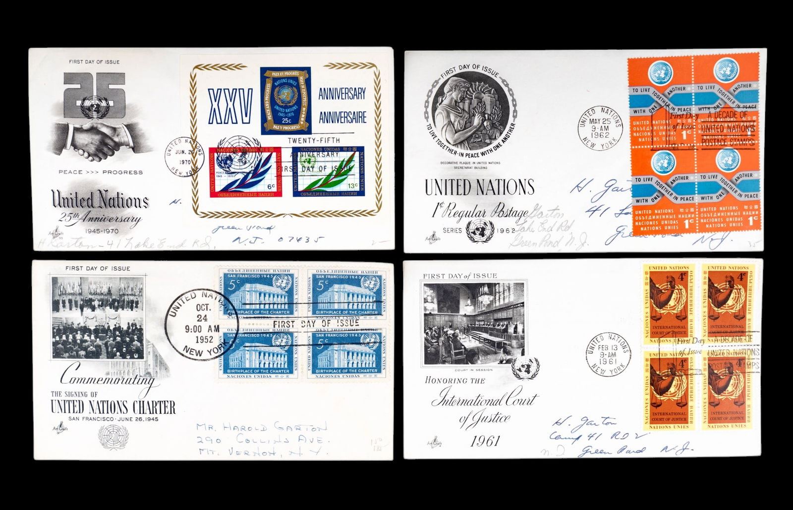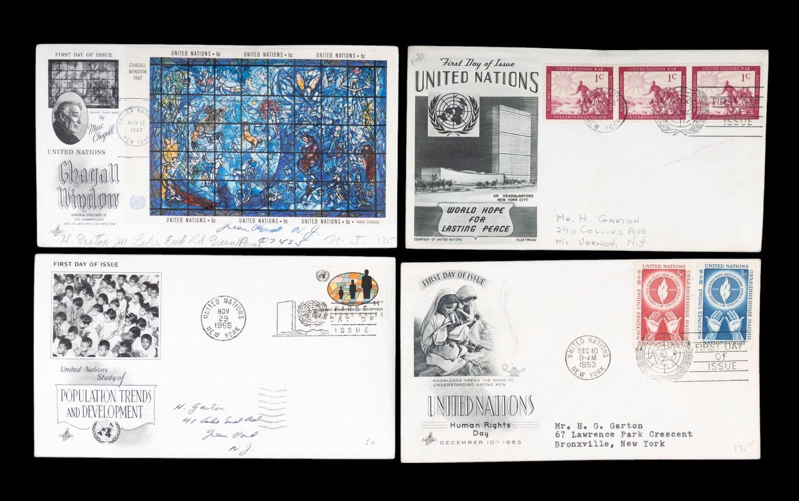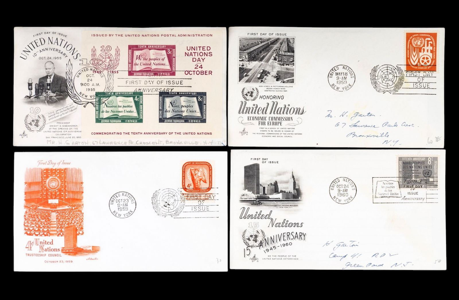 100+ United Nations first day issues. Many have engraved covers. Most, if not all, are from the 1950s & 60s.