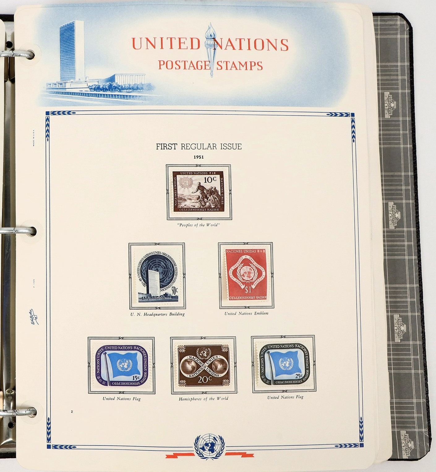 United Nations Stamp Collection. The White Ace Historical Album for the Postage Stamps of the United Nations with many covers and cancels. c.1950s