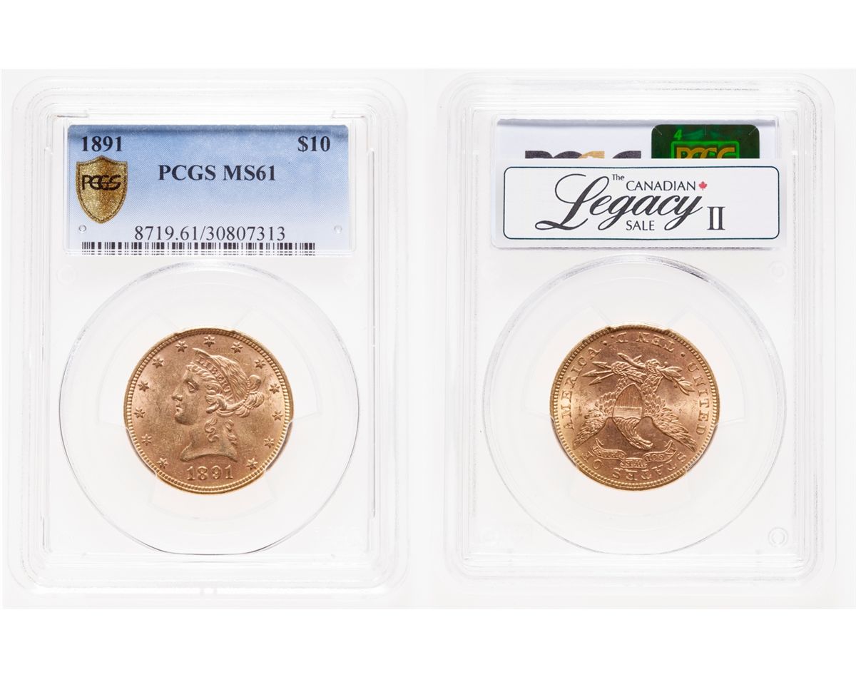 $10 Gold. 1897. 16.718g, .900, 0.48375oz AGW. PCGS graded Uncirculated-61.
