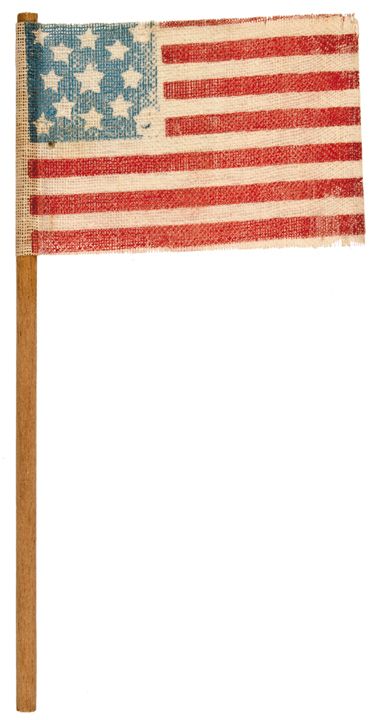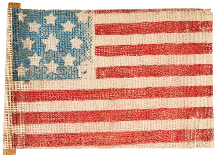 c. 1876, United States 13-Star “Great Star” Parade Flag, With Pole, Printed Upon Cotton Linen Fabric, Choice Very Fine+.
