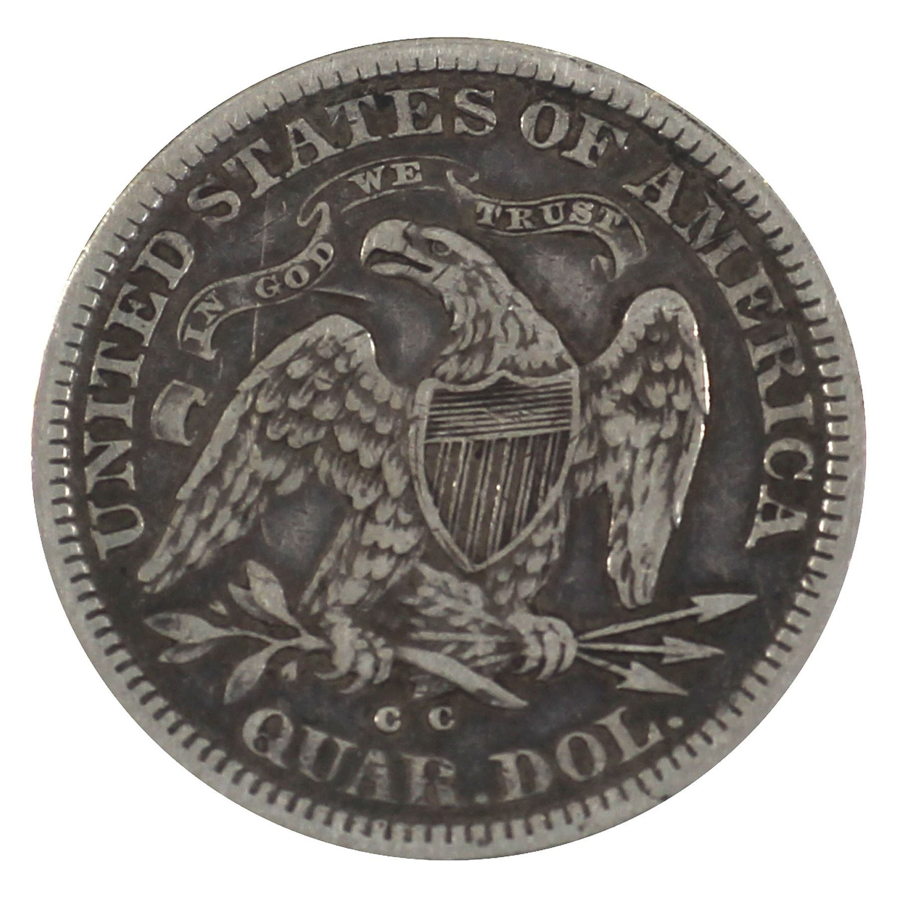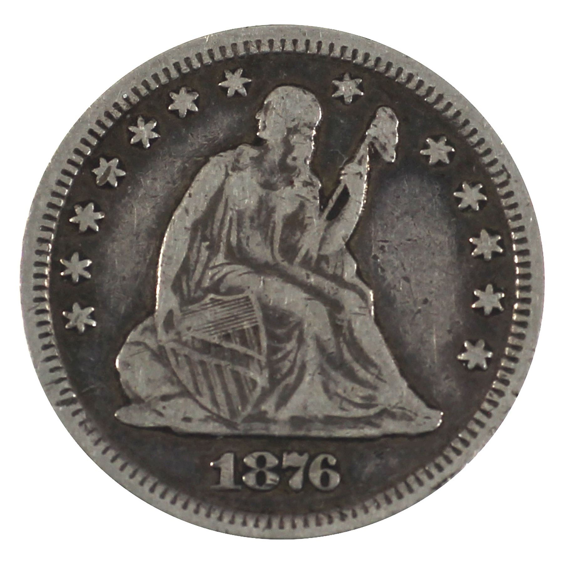 United States 1876-CC 25-cent Seated Liberty in VF condition.