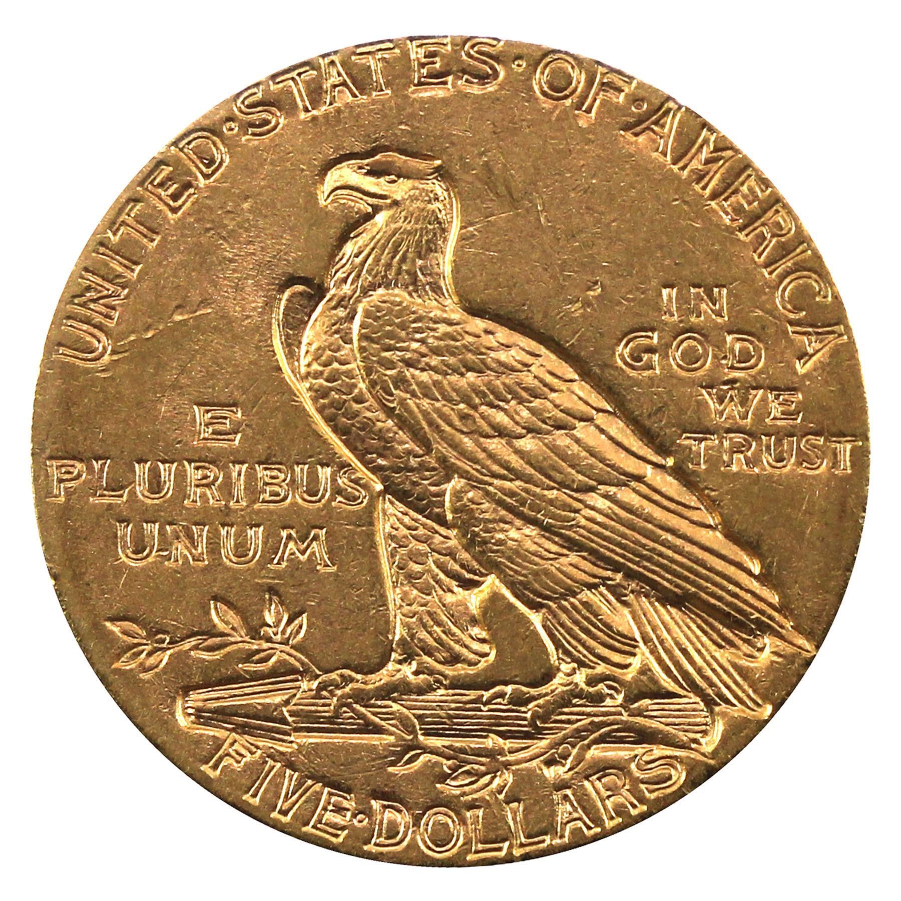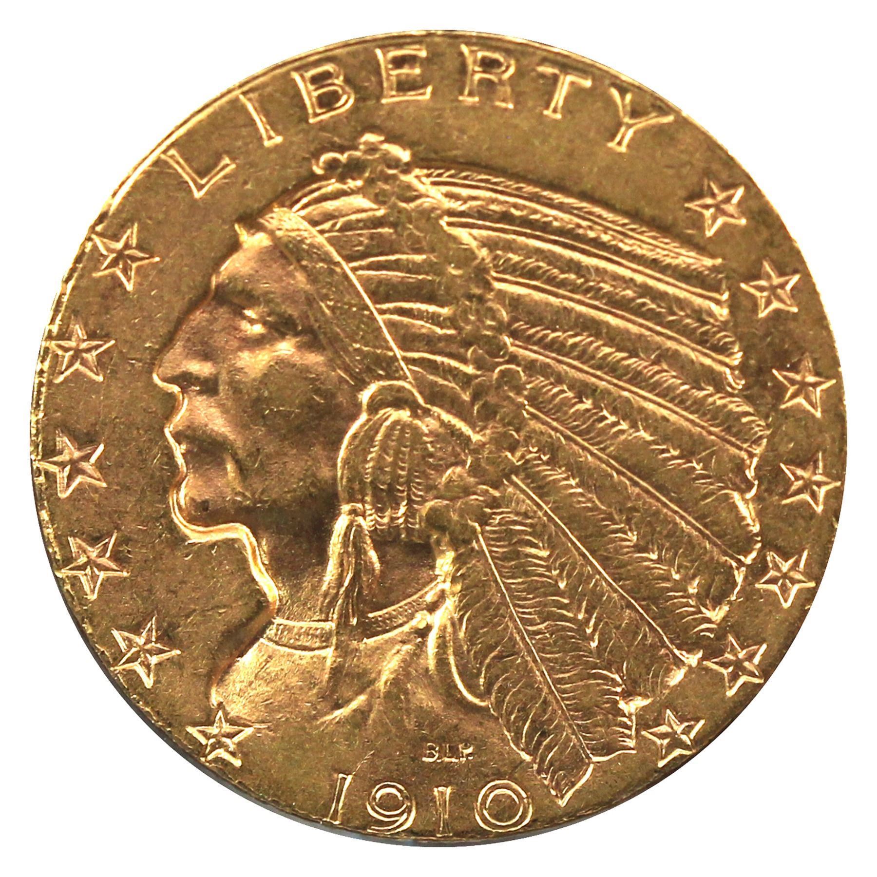 United States 1910 $5 Gold Indian Head Half Eagle in Extra Fine condition. (coin is .900 Pure and contains 0.242 oz)