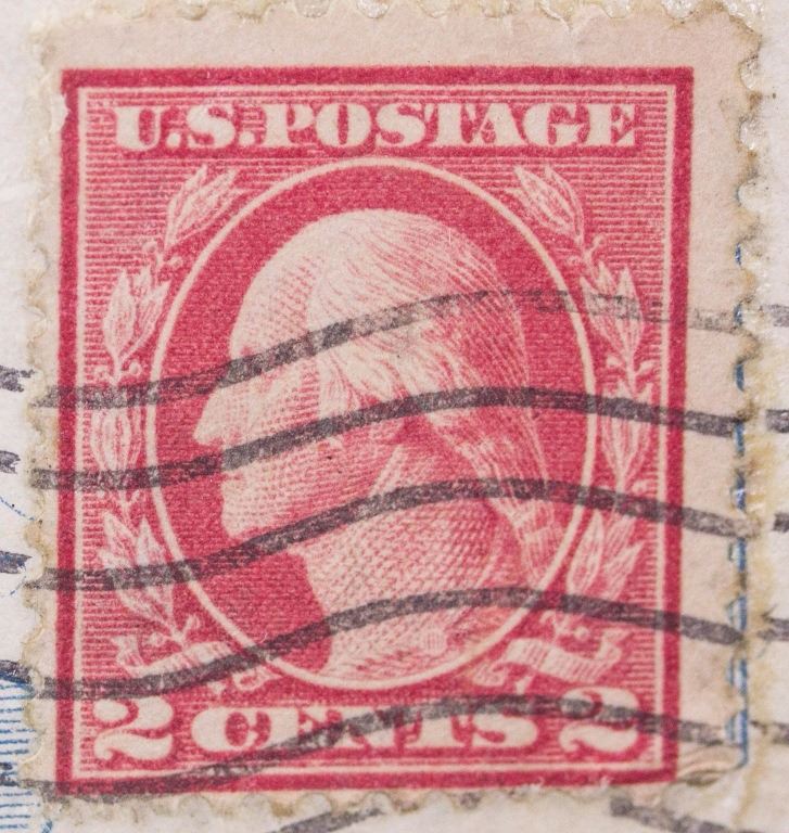 1 piece United States 1919 two cents stamp; come with post card; post card size 8.9 cm x 14 cm