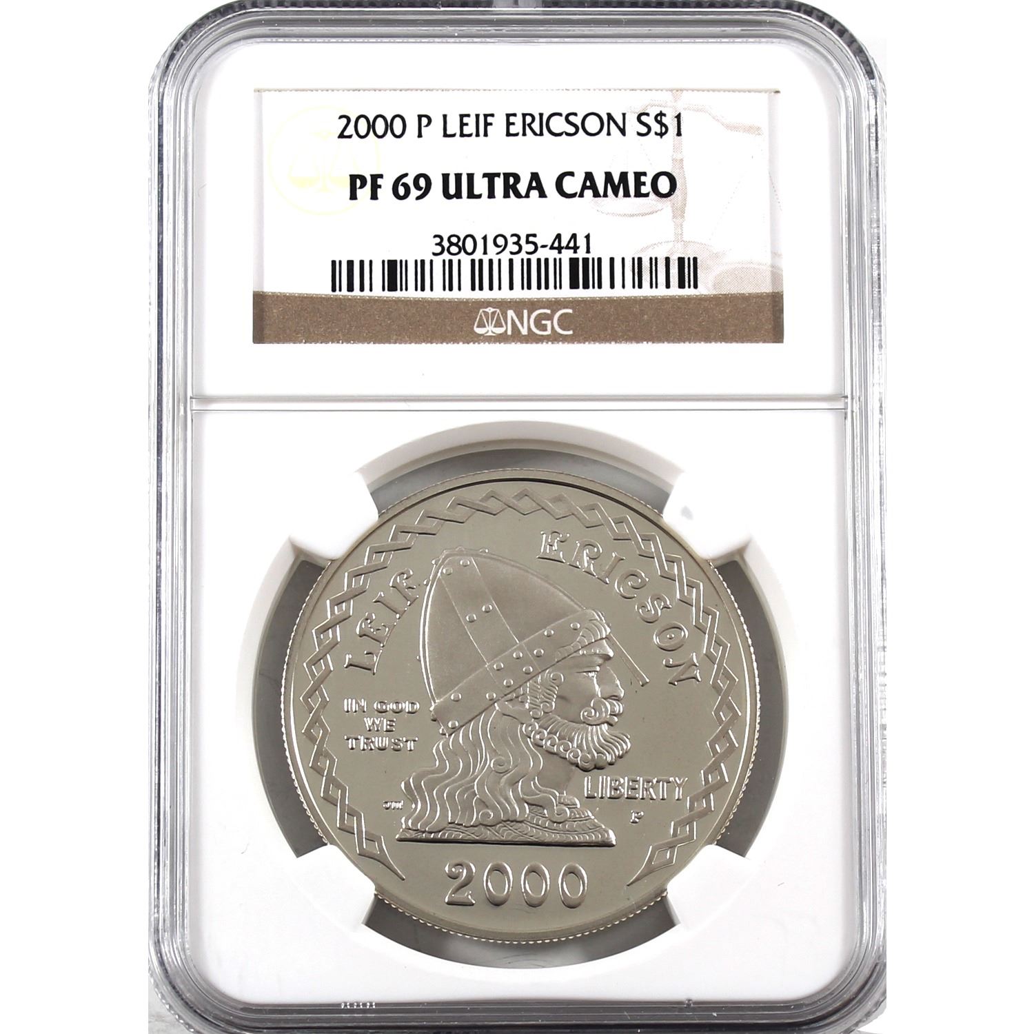 United States 2000-P Silver Dollar Commemorating Leif Ericson "Founder of the New World" NGC Certified PF-69 Ultra Cameo!